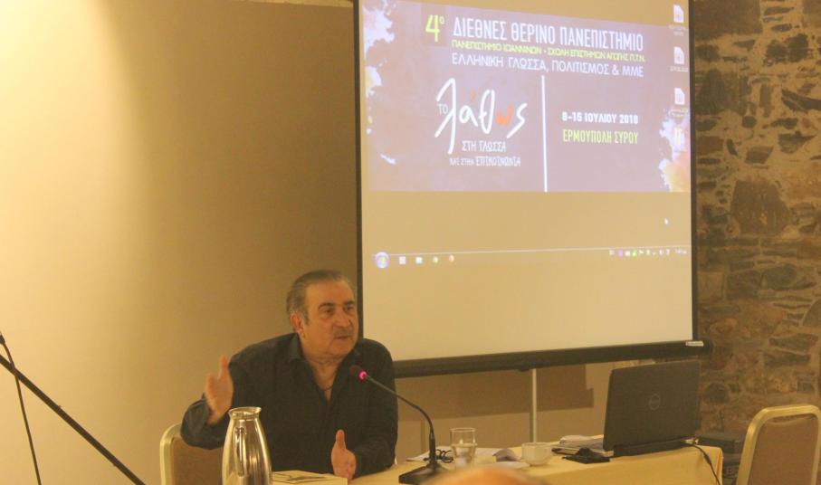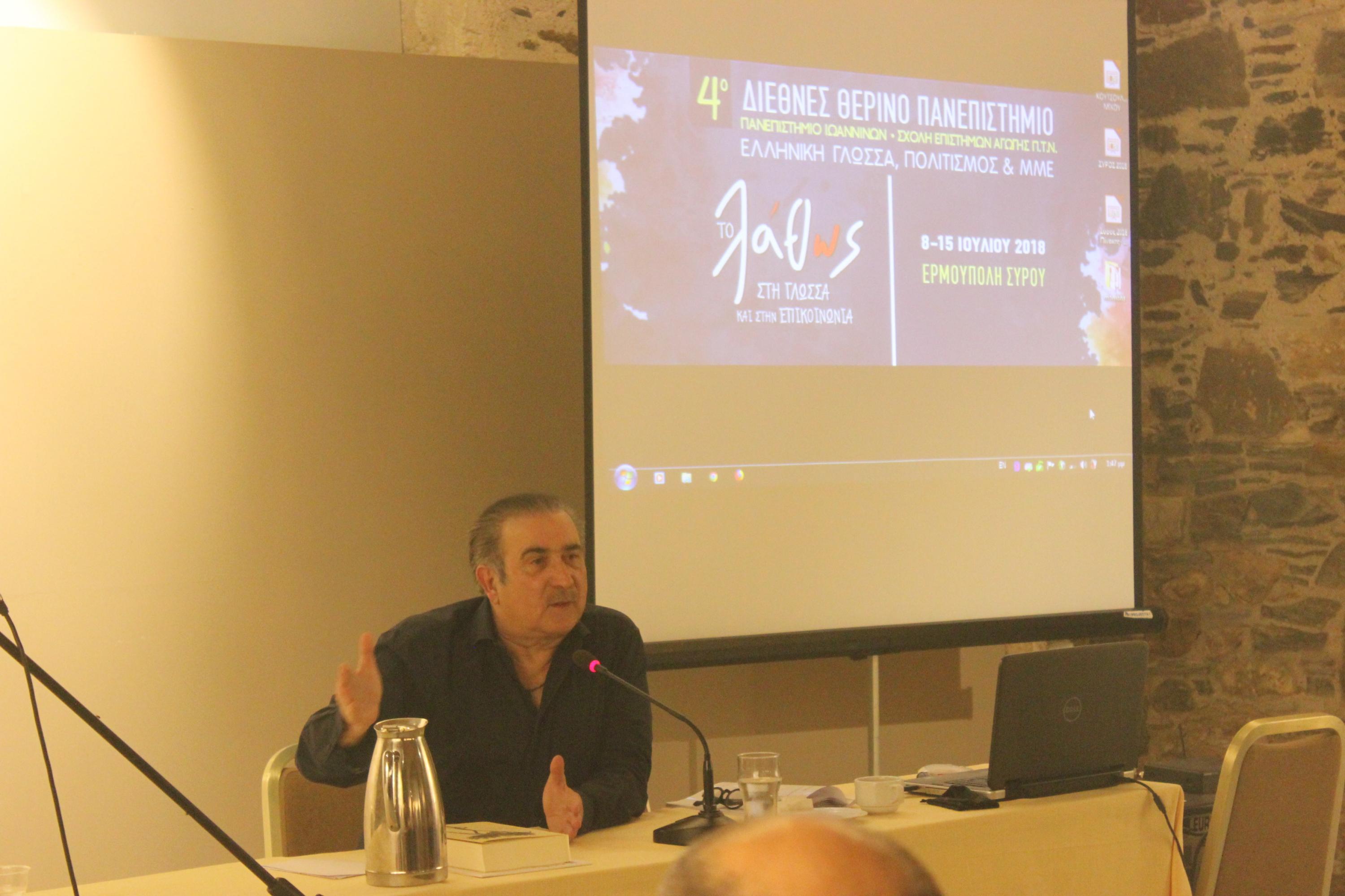 Η επαναλαμβανόμενη αναπαραγωγή του ψεύδους, που οδηγεί στην απώλεια της αίσθησης του αληθινού, στη διαμόρφωση μιας πλασματικής συνείδησης της πραγματικότητας και στη δημιουργία μιας virtual εικόνας στην κοινωνία, η οποία δεν ανταποκρίνεται στην αλήθεια των γεγονότων αποτέλεσε τον κεντρικό άξονα της ομιλίας του Λάζη Λαζόπουλο στο 4ο Διεθνές Θερινό Πανεπιστήμιο στη Σύρο.