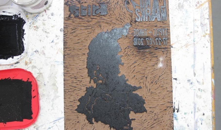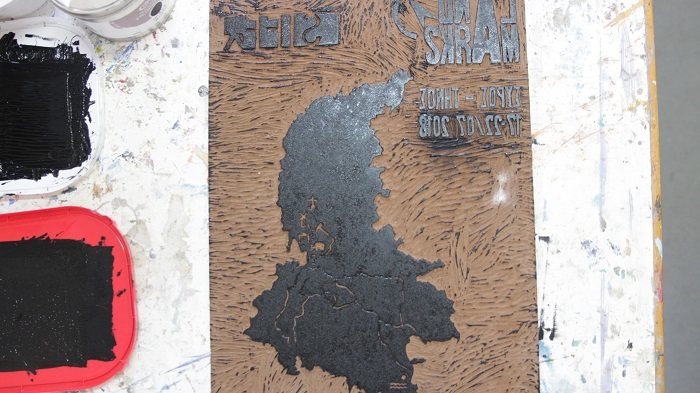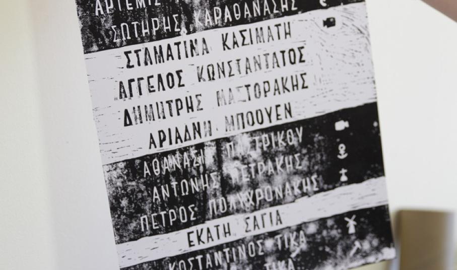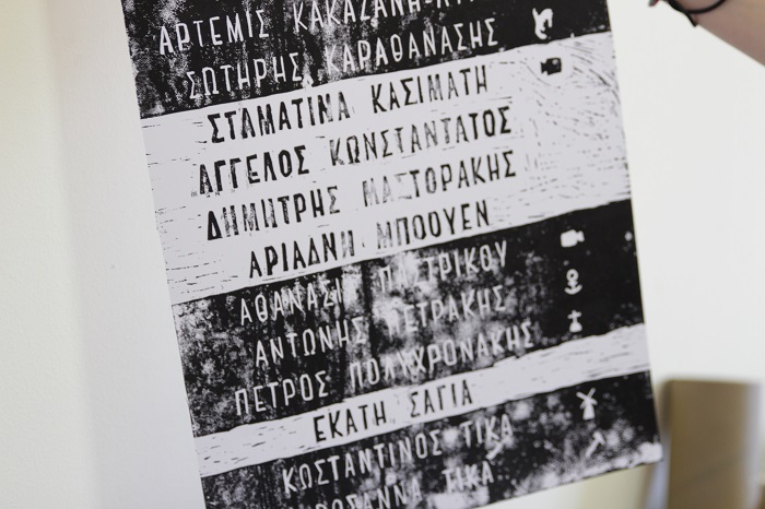 Όλα τα παιδιά του εργαστηρίου ασχολήθηκαν και με την κατασκευή του λογότυπου και του χάρτη με τα ονόματα όλων των έργων. Για το σκοπό αυτό, είδαν τυπογραφικά μηχανήματα και αντικείμενα τα οποία χρησιμοποιούνταν στη Σύρο για το τύπωμα των εφημερίδων και εμπνεύστηκαν από αυτά. Μετά δούλεψαν πάνω σε λινόλαιο, που είναι μια συγκεκριμένη τεχνική. Έξυσαν το υλικό και έφτιαξαν μια σφραγίδα που τυπώθηκε με μελάνι. Έτσι, όλες οι αφίσες έγιναν χειρωνακτικά. «Οι συμμετέχοντες έκαναν δηλαδή κάτι παρόμοιο με τους γλύπτες, που σκαλίζουν το μάρμαρο και φεύγει το υλικό. Οι ίδιοι σκάλισαν το λινόλαιο και είχαν ένα αντικείμενο για την παραγωγή των αφισών που διένειμαν στον κόσμο. Έγινε, δηλαδή, μια σύνδεση με την ιστορία της τυπογραφίας της Σύρου», κατέληξε η κ. Ντώνα.