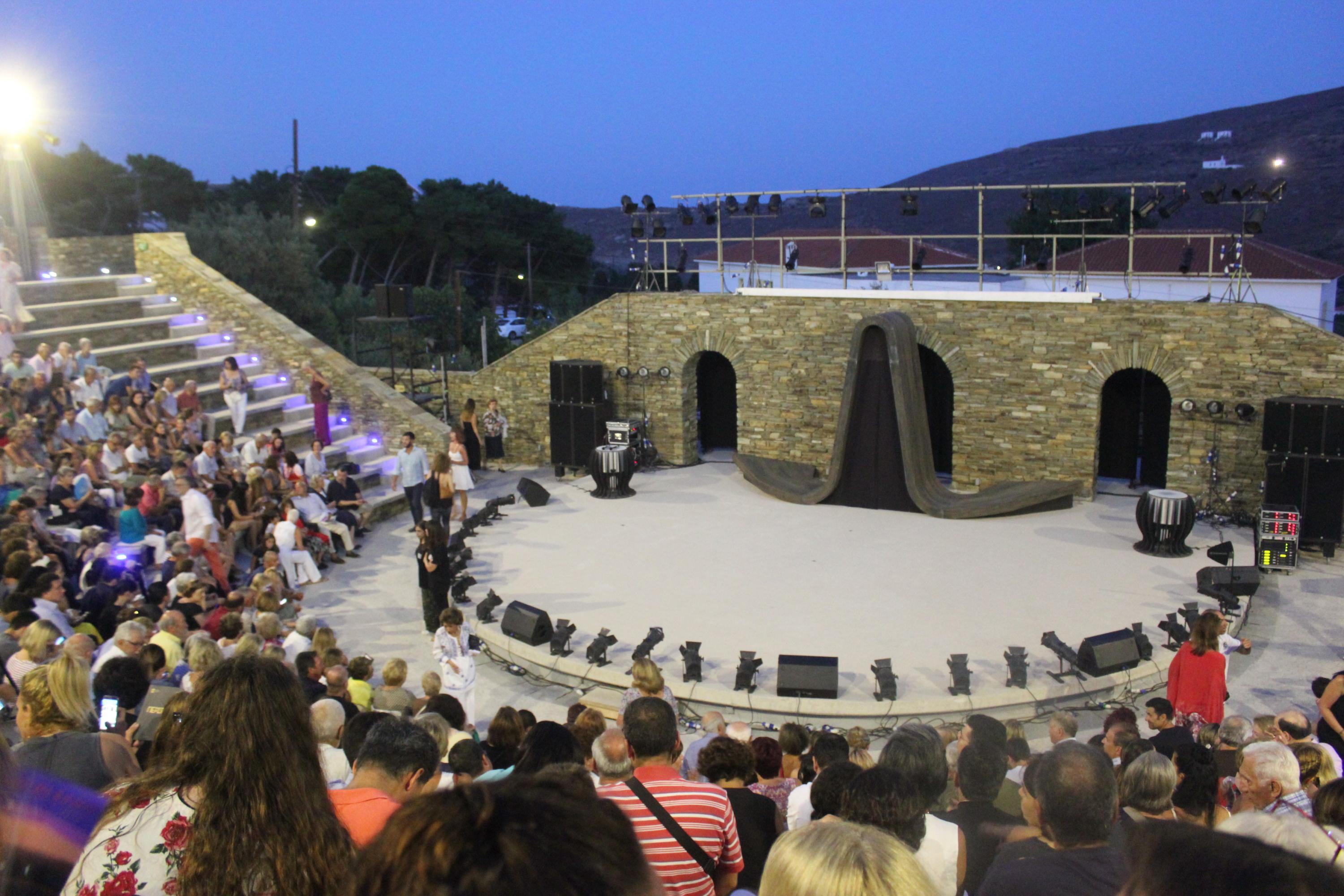 «Βασικό ρόλο έχει παίξει ο ίδιος ο χώρος του θεάτρου. Όσο και να σκεφτόμασταν παλαιότερα τη διοργάνωση πολιτιστικών εκδηλώσεων, οι δυνατότητες ήταν περιορισμένες. Από τη στιγμή που ο Αλκιβιάδης Τάτος, ο χρηματοδότης της όλης προσπάθειας, παρέδωσε αυτόν τον χώρο πολιτισμού, αρχίσαμε να σκεφτόμαστε πια συγκεκριμένα πράγματα. Τον πρώτο χρόνο, ίσα που προλάβαμε, γιατί ακόμα δεν είχε διαμορφωθεί τελείως και με κάθε λεπτομέρεια το θέατρο. Τη δεύτερη χρονιά είχαμε πάρα πολλές παραστάσεις και είδαμε ότι, ίσως ήταν πολύ μεγάλο ρίσκο, γιατί δεν υπάρχει χρηματοδότηση από το κράτος ή την Περιφέρεια. Τώρα, νομίζω πως, έχουμε βρει μία σωστή ισορροπία ανάμεσα σε αυτά που φιλοδοξούμε να δείξουμε το καλοκαίρι και τις δυνατότητες του θεάτρου. Η χωρητικότητά του είναι 900 θέσεις, που σημαίνει ότι δε συμφέρει πολύ δημοφιλείς τραγουδιστές, συνθέτες κλπ. να κάνουν συναυλία σε ένα χώρο που θα κόψουν μόνο 900 εισιτήρια. Γιατί αυτοί, επειδή ακριβώς είναι πολύ αγαπητοί και σύγχρονοι δημιουργοί, γεμίζουν θέατρα με 3.000-4.000 κόσμο και παραπάνω. Εμένα δεν είναι αυτή η δουλειά μου. Δεν φιλοδοξώ να είμαι καλλιτεχνικός διευθυντής σε φεστιβάλ. Σκηνοθέτης κινηματογράφου είμαι. Επειδή έχω χρόνια στην Άνδρο έναν χώρο και έρχομαι το καλοκαίρι, βοηθάω. Έτσι, βρίσκομαι εδώ για 4η χρονιά».