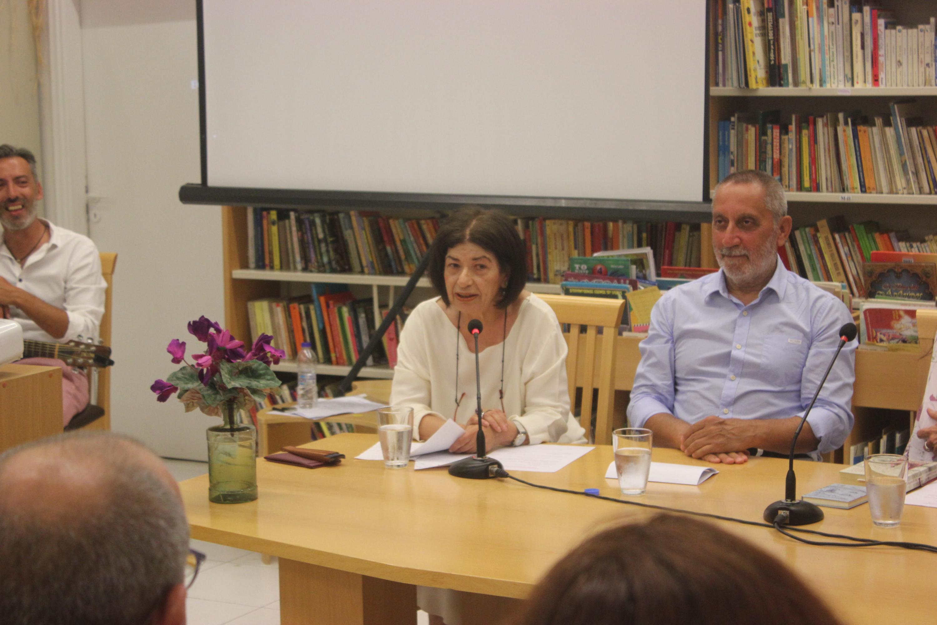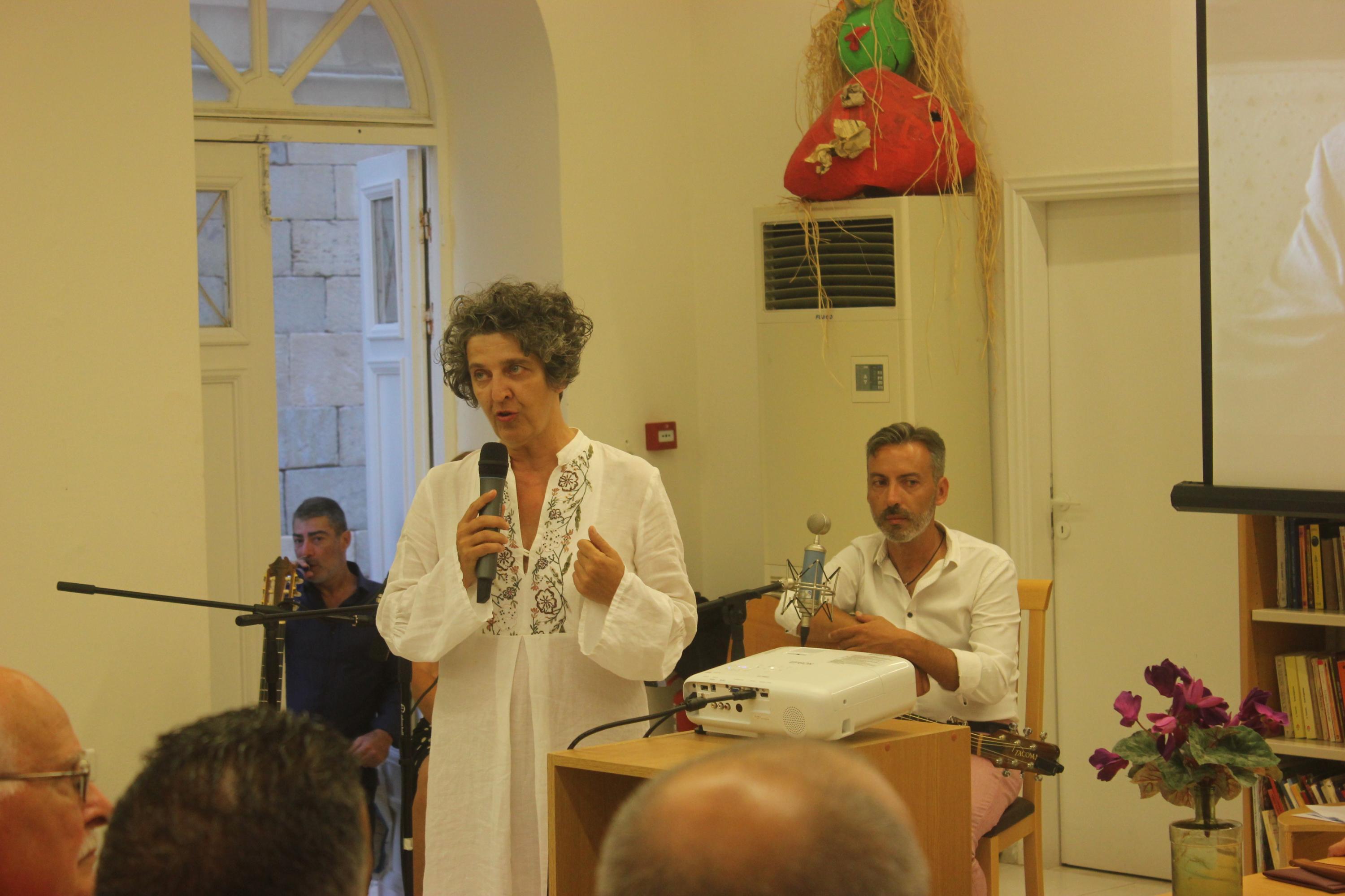 Στον χαιρετισμό της, η εντεταλμένη δημοτική σύμβουλος Βιβλιοθηκών, Μαρίζα Αγγελοπούλου κατέστησε γνωστό, ότι η συγκεκριμένη εκδήλωση είχε προγραμματιστεί από τον περασμένο χειμώνα από κοινού με τον Μάνο Ελευθερίου, ο οποίος μάλιστα θα ήταν παρών. «Δυστυχώς, δεν είναι μαζί μας, αλλά εμείς αποφασίσαμε να κάνουμε αυτή τη γιορτή σαν να είναι εδώ. Για εμάς ο Μάνος Ελευθερίου είναι ένας μεγάλος Έλληνας ποιητής, σε ένα βάθρο ψηλά και απόψε, βρισκόμαστε εδώ για τη δόξα του, όχι για να λυπηθούμε», είπε χαρακτηριστικά.