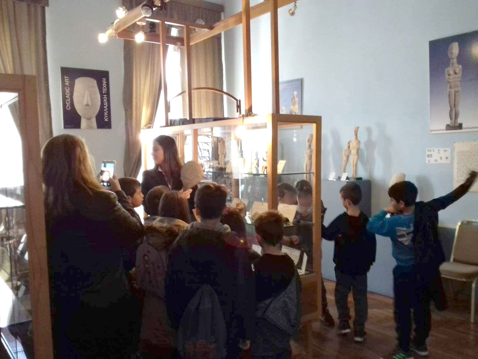 Η υπάλληλος ξενάγησε τους μαθητές στο χώρο της έκθεσης, τους παρουσίασε μοναδικά αντίγραφα προϊστορικών ειδωλίων που περιέχονται στη συλλογή της και τους ενημέρωσε για τον σπουδαίο Κυκλαδικό Πολιτισμό της 3ης χιλιετίας π.Χ. που θεωρείται ένας από τους πέντε σημαντικότερους του κόσμου.