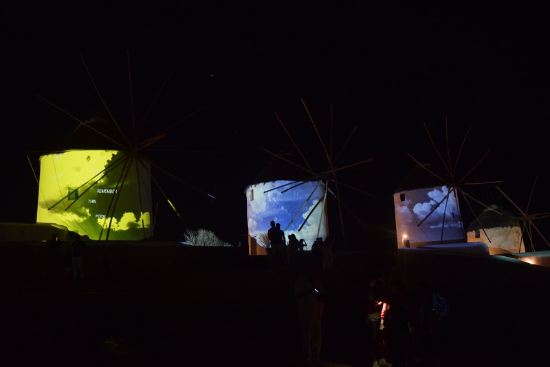 Οι Ανεμόμυλοι της Χώρας Μυκόνου, ένα από τα πιο γνωστά κυκλαδίτικα τοπόσημα, πήραν ζωή μέσα από το έργο «Μνήμη» της εικαστικού Νάντιας Σκορδοπούλου σε μία ολονύκτια προβολή στις 15 Αυγούστου 2019, που απέσπασε ιδιαιτέρως κολακευτικά σχόλια από πλήθος επισκεπτών.