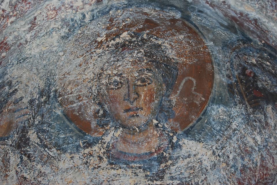 Σταυροί, γεωμετρικά και φυτικά θέματα, καθώς και παραστάσεις πτηνών παρουσιάζονται στον εντυπωσιακό διάκοσμο της Αγίας Κυριακής, ενός μοναδικού αρχιτεκτονήματος του Αιγαίου που πριν από μερικά χρόνια αναστηλώθηκε και αναδείχθηκε από την Εφορεία Αρχαιοτήτων Κυκλάδων.