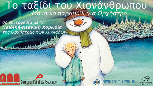 Στο πλαίσιο του Χριστουγεννιάτικου προγράμματος του Δήμου Σύρου – Ερμούπολης για το 2019, η Αστική Μη Κερδοσκοπική Εταιρεία «Οὐριος Ανέμος» διοργανώνει μια μοναδική μουσική εκδήλωση. Η βελγική ομάδα Europian Fairytale Association θα συναντηθεί με τα παιδιά της Σύρου και μαζί θα εξερευνήσουν το μαγικό κόσμο της κλασσικής μουσικής. Στις 21 & 22 Δεκεμβρίου 2019, η κλασική ορχήστρα θα συνοδεύσει τους νέους της χορωδίας της Ορχήστρας των Κυκλάδων που θα τραγουδήσουν τα Χριστουγεννιάτικα κάλαντα της Ελλάδας και του κόσμου, ώστε τα παιδιά να έχουν την ευκαιρία να ακούσουν και να εργαστούν πάνω σε μια διαφορετική μουσική προσέγγιση. Στο δεύτερο μέρος, οι 13 Βέλγοι μουσικοί θα παρουσιάσουν, την τελευταία τους δουλειά, τη γνωστή μουσική ιστορία "Ο Χιονάνθρωπος" του Howard Blake σε συνεργασία με την ηθοποιό Μαργαρίτα Αγγελοπούλου στην αφήγηση του παραμυθιού και ένα παιδί σολίστ από τη Σύρο.