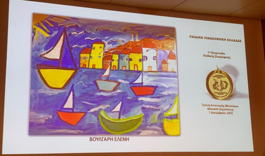 Η 1η Ολυμπιάδας Παιδικής Ζωγραφικής, υπό την Αιγίδα της Α.Ε. του Προέδρου της Δημοκρατίας κυρίου Προκοπίου Παυλοπούλου, ξεκίνησε στις 20 Οκτωβρίου 2018, στο Ζάππειο Μέγαρο και κορυφώθηκε με μια λαμπερή τελετή βράβευσης την 1η Δεκεμβρίου 2019 στο Μουσείο Ακρόπολης.