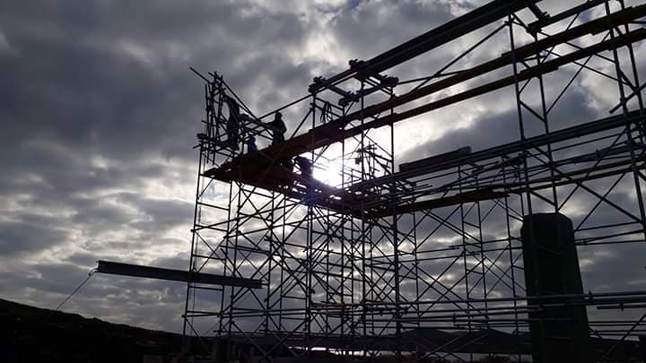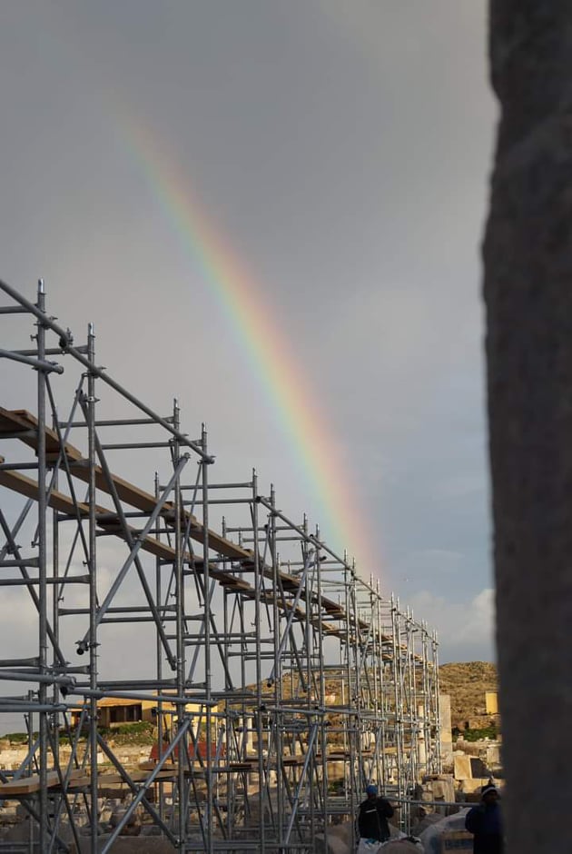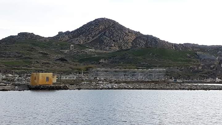 Η εγκατάσταση του ικριώματος είναι το επόμενο βήμα των εργασιών αναστήλωσης της θαυμαστής Στοάς του Φιλίππου Ε’ που υλοποιούνται στο νησί της Δήλου.