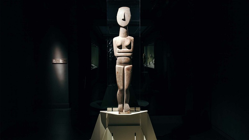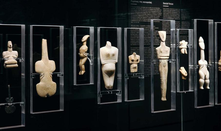 Ανάμεσα στις δημιουργίες της Πρωτοκυκλαδικής περιόδου εξέχουσα θέση κατέχουν τα περίτεχνα ειδώλια ανδρικών και γυναικείων μορφών που άλλοτε παίζουν μουσική, πίνουν, εναγκαλίζονται και άλλοτε κάθονται σε παθητική στάση ή και «σταυροπόδι» ωσάν να συμμετέχουν σε ένα δρώμενο της καθημερινής ζωής. Τα ειδώλια του «αρπιστή» και του «αυλητή», των μουσικών δηλαδή, όχι μόνον αποτελούν μαρτυρία για τα μουσικά όργανα της εποχής αλλά και για τον τρόπο ψυχαγωγίας στις Κυκλάδες κατά την 3η χιλιετία π.Χ. Μέσα από τις μορφές τους, οι επισκέπτες γνωρίζουν μια κοινωνία ολόκληρη που ξέρει να γιορτάζει μέσα στην τριλογία του ελληνικού πολιτισμού. Στην ένωση της φύσης, του ανθρώπου και του Θεού.