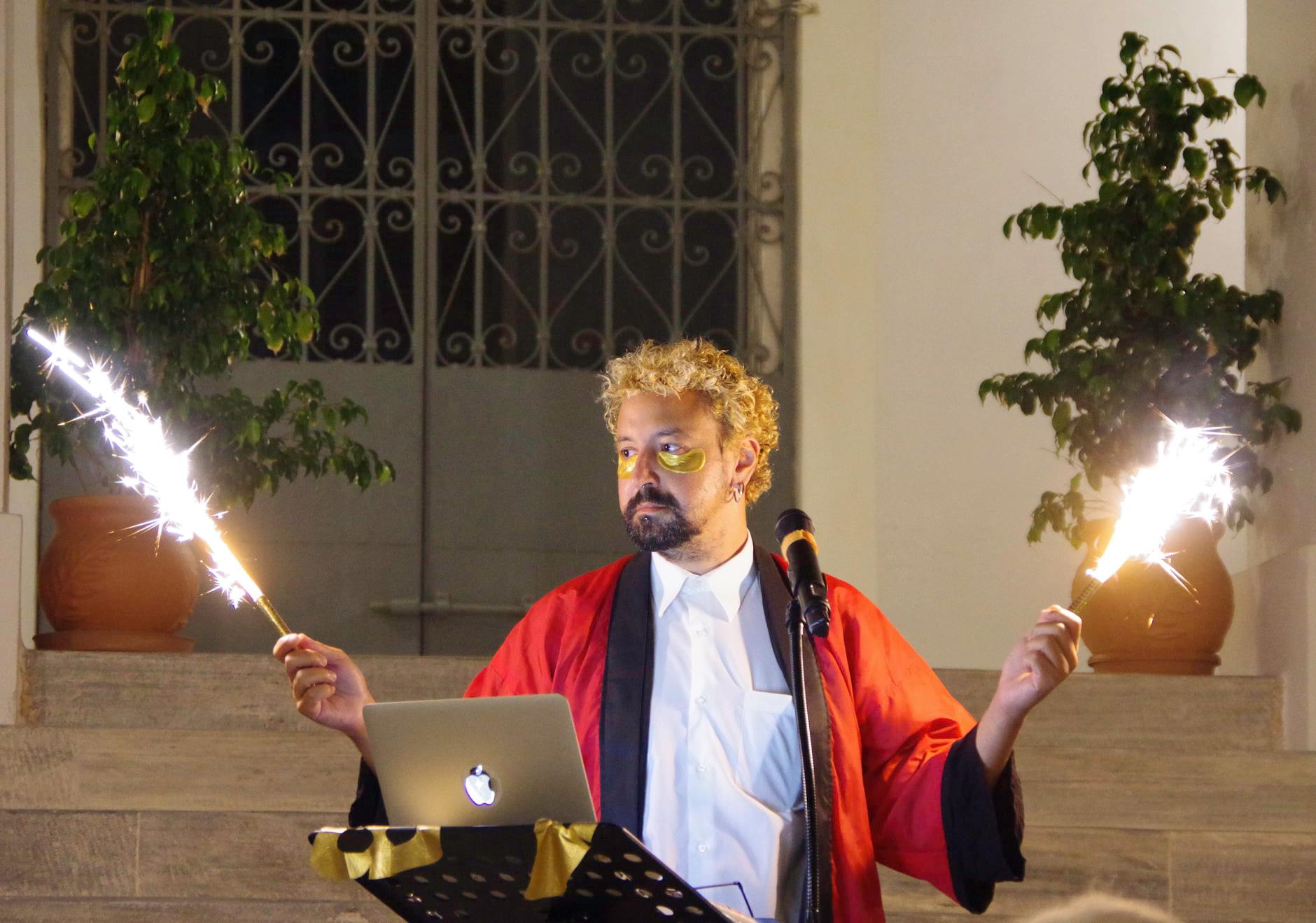 Στο μαγικό προαύλιο της Εκκλησίας της Κοίμησης της Θεοτόκου στην Ερμούπολη, τρεις από τους συμμετέχοντες καλλιτέχνες, η Αθηνά Κανελλοπούλου, η Κατερίνα Γώτη- Viscosity και ο Θωμάς Διάφας μοιράστηκαν με το κοινό τις σκέψεις και τα συναισθήματα τους γύρω από τα φύλα. Καθένας από αυτούς εκφράστηκε και εμπνεύστηκε τις πολύχρωμες διαστάσεις ενός κόσμου… γεμάτου φύλα. Queer προβληματικές παρουσιάστηκαν και συζητήθηκαν, μέσω του διαμιντιακού χαρακτήρα της μουσικής, της λογοτεχνίας, της ποίησης, του installation, της performance κ.α.