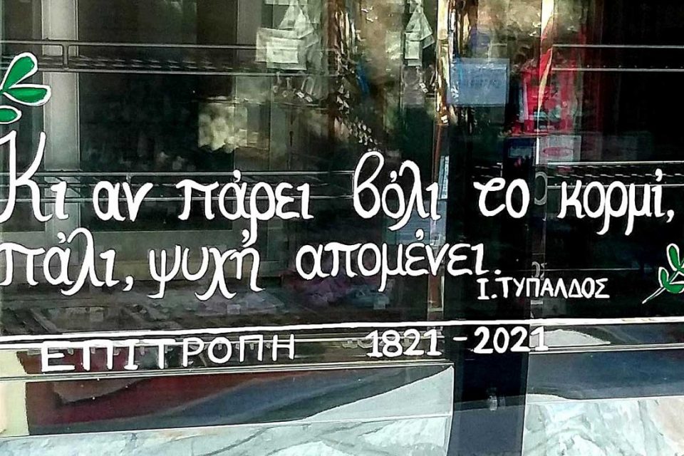 Μία από τις δράσεις που έχει ήδη υλοποιήσει η Επιτροπή «Πρέβεζα 1821-2021» και η οποία έχει συγκεντρώσει ευμενή σχόλια, είναι η αναγραφή στίχων στις βιτρίνες καταστημάτων, πρωτοβουλία που αγκάλιασαν οι καταστηματάρχες. Περπατώντας κάποιος στην αγορά της πόλης, παρατηρεί κανείς στίχους του Ρήγα, του Σολωμού, του Κάλβου, του Παλαμά, καθώς και δημοτικών τραγουδιών του αγώνα.