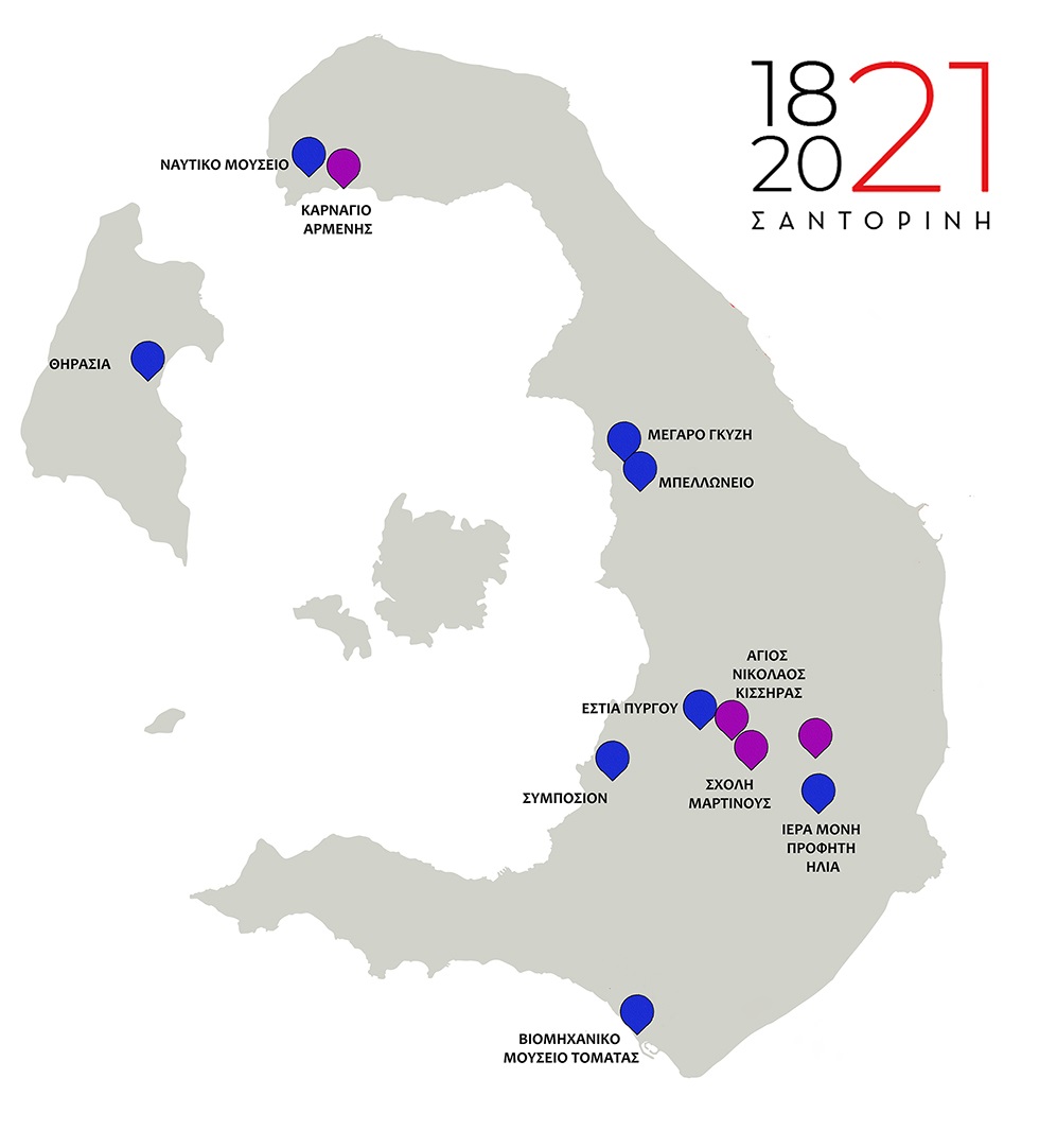 Με δεδομένο ότι η Σαντορίνη και η Θηρασιά δεν θα μπορούσαν να είναι απούσες από μία τόσο σημαντική -για τη χώρα μας- επέτειο, τοπικοί σύλλογοι και φορείς ενώνουν τις δυνάμεις τους και συνδιαμορφώνουν έναν ξεχωριστό πολιτιστικό χάρτη με έμφαση στη διαφύλαξη της ιστορικής μνήμης και της πολιτιστικής κληρονομιάς των νησιών, καθώς και την προβολή και προστασία των μνημείων τους.