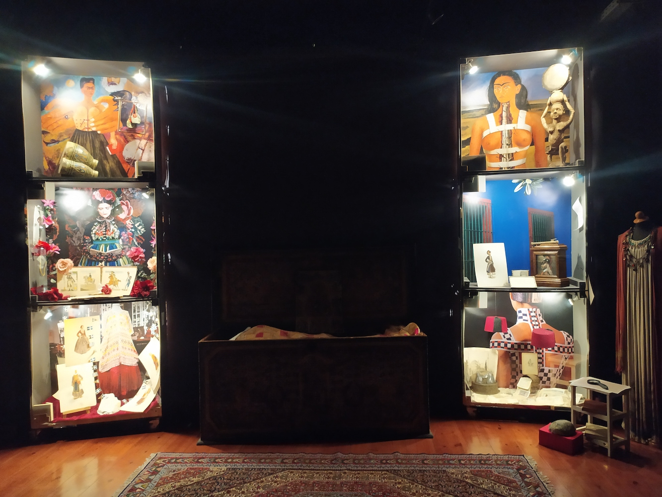 Η Φρίντα Κάλο (1907-1954), στις ψηλές βιτρίνες, σφίγγει τους ιμάντες που κρατούν τη σπονδυλική της στήλη σε όρθια στάση. Τι περίεργο: “σπόνδυλοι ονομάζονται τα ταμπούρλα των αρχαίων κιόνων”.