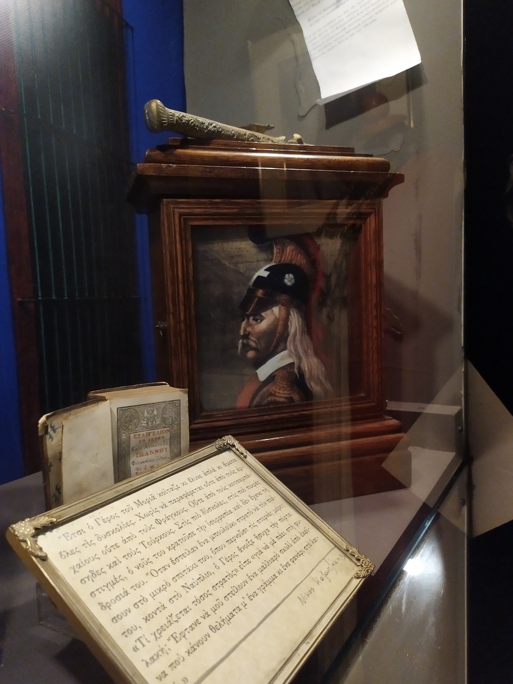 Στη θυσία του αίματος για ελευθερία ενάντια στη δουλεία, για την τιμή του ανθρώπου, ένας μείζων ελληνισμός κάθε τόπου και χρόνου στέκει απέναντί μας στην προθήκη.