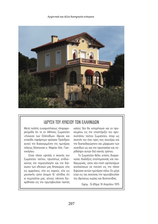 “Το χρονικό πλαίσιο που εκτείνεται το κείμενο είναι από το 1823 περίπου με τους ντόπιους τη ζωή και την κατοικία τους, παρεμβάλλεται ο τρόπος ζωής των παραθεριστών, τα’ αρχοντικά κ.α. και φτάνει ως το πρόσφατο παρελθόν. Οι δυσκολίες που συνάντησα ήταν η έλλειψη χρόνου κι η κόπωση από μέρους μου γιατί η προσπάθεια γινόταν τα Σαββατοκύριακα στις διακοπές και στον ελεύθερο χρόνο μου, μετά τις υποχρεώσεις μου. Το μεγαλύτερο όμως πρόβλημα ήταν η έλλειψη στοιχείων για κάποια αρχοντικά και τους ενοίκους τους ή ακόμα χειρότερα η ύπαρξη αντικρουόμενων στοιχείων που έπρεπε να διευκρινιστούν”.