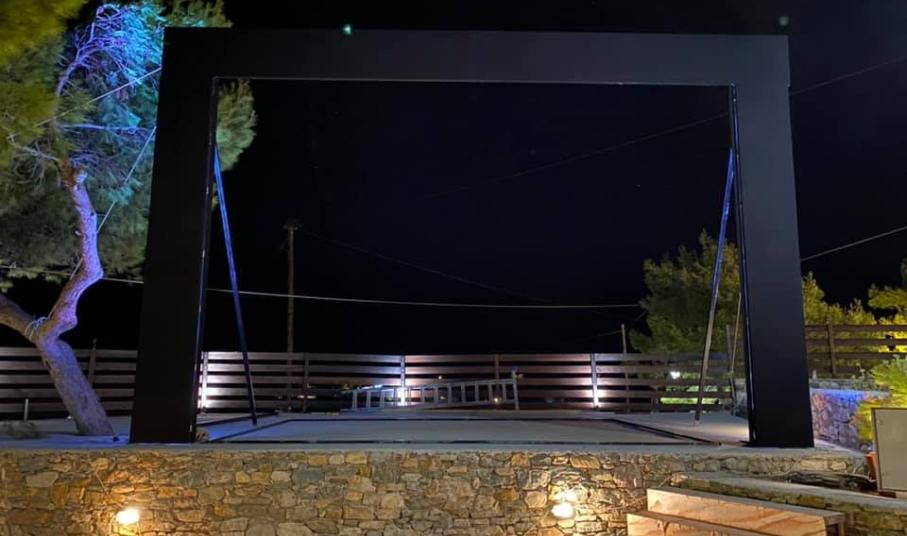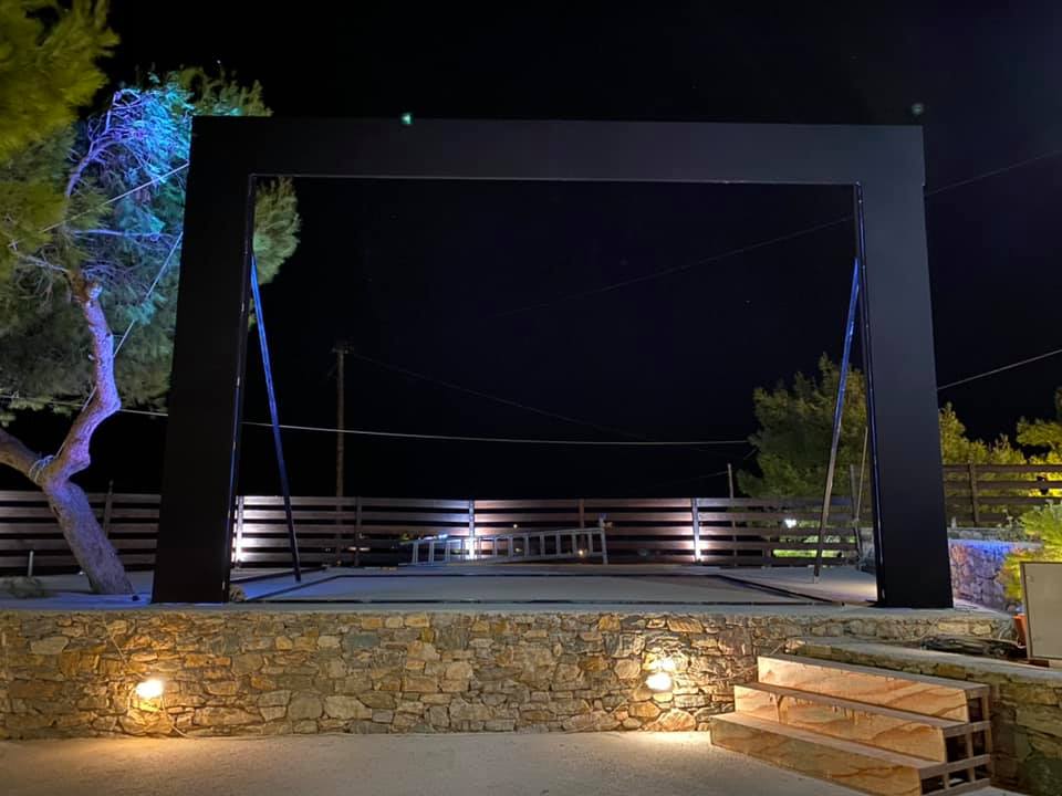 Τέλος, ενισχύθηκε και η αντιανεμική προστασία του χώρου με την προμήθεια αντιανεμικού υφάσματος που θα τοποθετείται περιμετρικά στον κάτω χώρο ώστε να είναι προστατευμένη η σκηνή.