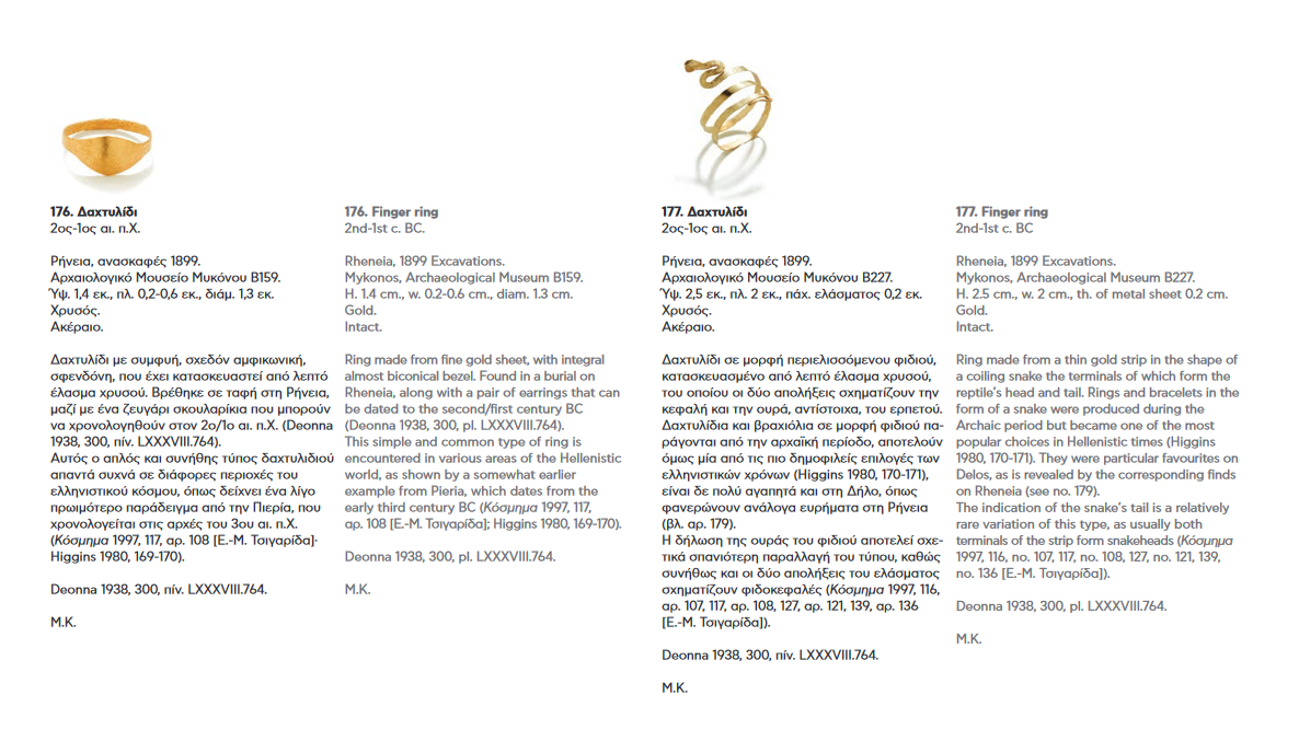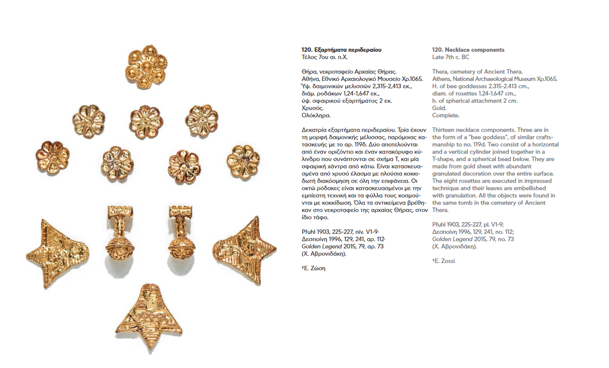 «Μέσα σε αυτό το πλαίσιο επιλέγεται η πρώτη διακυκλαδική έκθεση που στήνεται στο Μουσείο Μυκόνου να έχει ως θέμα της το κόσμημα: Ένα αρχαιολογικό υλικό, συνήθως παραγνωρισμένο, που δεν προβάλλεται επαρκώς στα μουσεία, παρά τις πολύτιμες πληροφορίες που εμπεριέχει, την ποιότητα, την υψηλή τέχνη και τον, συνήθως, πολύτιμο χαρακτήρα του», αναφέρει. «Ειδικά τα κυκλαδικά κοσμήματα της έκθεσης στην Μύκονο παρέμεναν, τα περισσότερα, αθέατα για το ευρύ κοινό αλλά και άγνωστα στους ειδικούς επιστήμονες. Επομένως, η συγκέντρωση, επιλογή, συντήρηση, έκθεση και δημοσίευσή τους με τον παρόντα κατάλογο συνιστά και μείζον επιστημονικό γεγονός για την κυκλαδική αρχαιολογία».