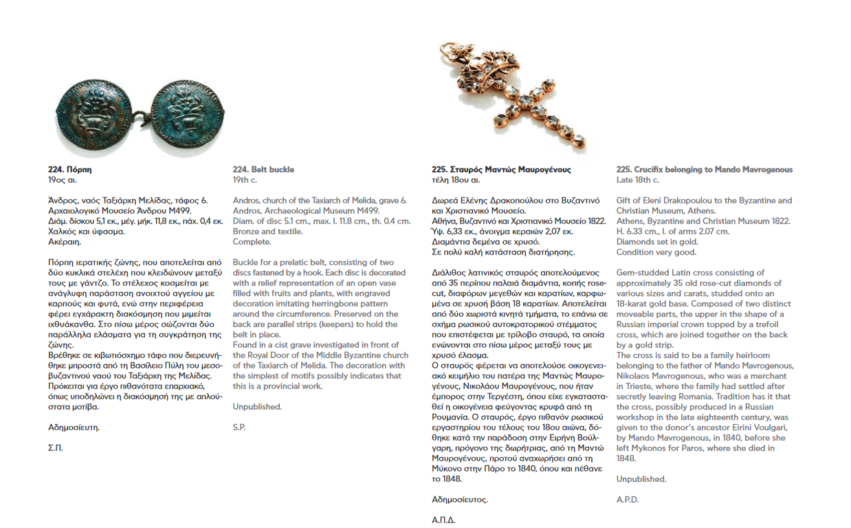 Ο Δήμαρχος Μυκόνου, αφού αναφέρεται στη συμβολικότητα της έκθεσης, η οποία «στήθηκε» στο αναμορφωμένο Αρχαιολογικό Μουσείο Μυκόνου, για την επανατοποθέτηση της Μυκόνου στο «κέντρο του χάρτη» της Περιφέρειας για τη δημόσια αρχαιολογία, αλλά και στην πολύτιμη συμβολή της τοπικής κοινωνίας στην οργάνωση και υλοποίησή της, ειδική μνεία κάνει στην ξεχωριστή θέση που έχει στην έκθεση, το ιδιαίτερης ιστορικής και συμβολικής αξίας για τους Μυκονιάτες έκθεμα, αυτό του σταυρού της ηρωίδας Μαντούς Μαυρογένους, το μοναδικό κόσμημα που της απέμεινε, αφού διέθεσε όλη την περιουσία της στην Επανάσταση του ’21.
