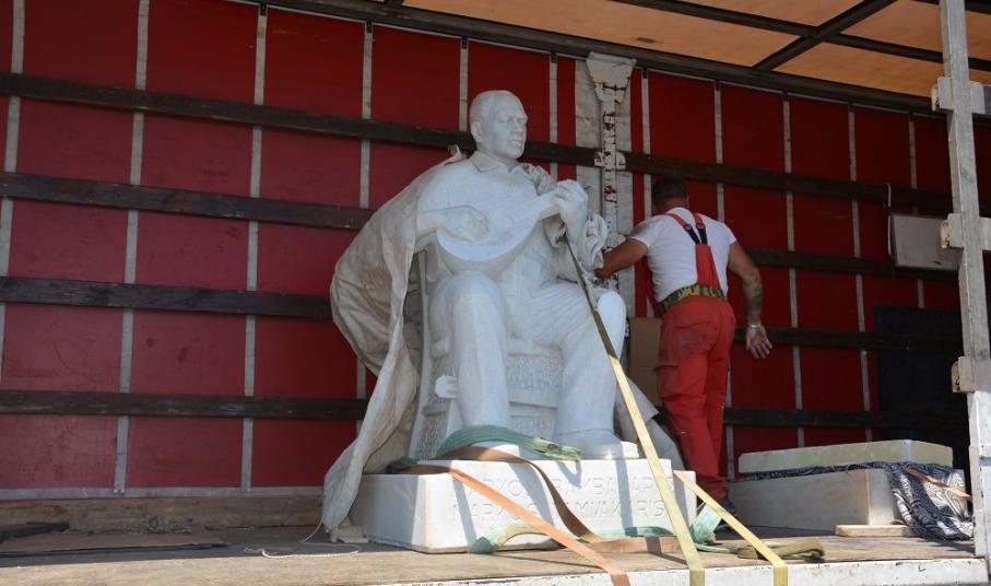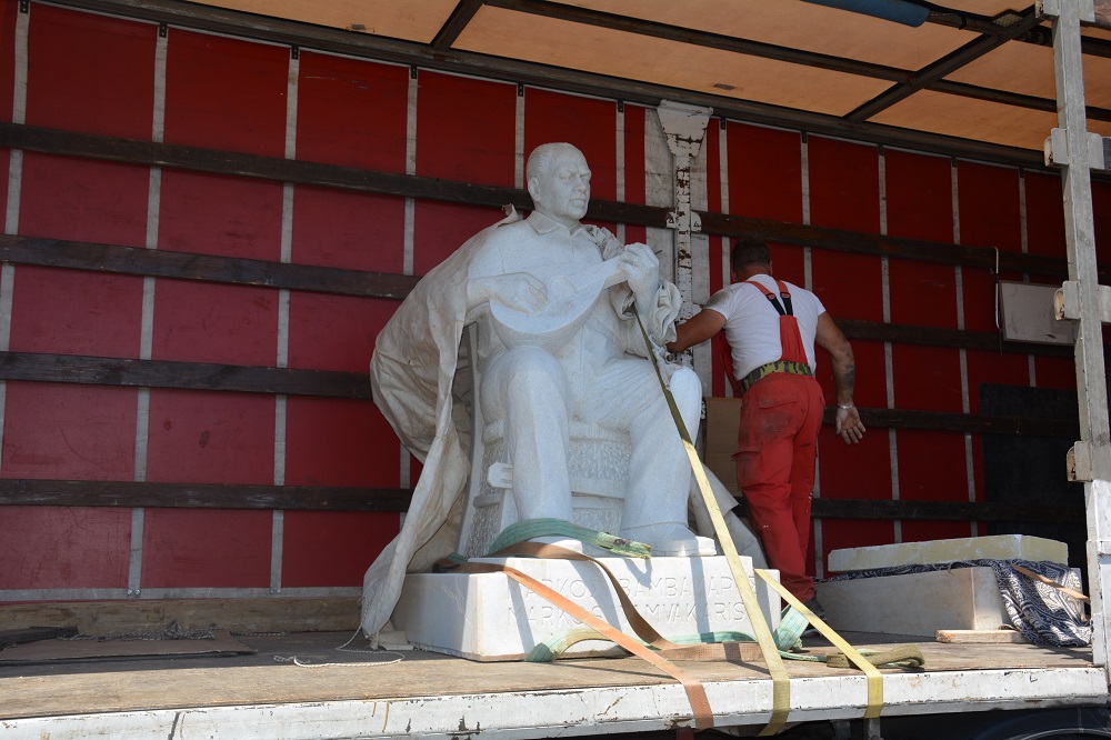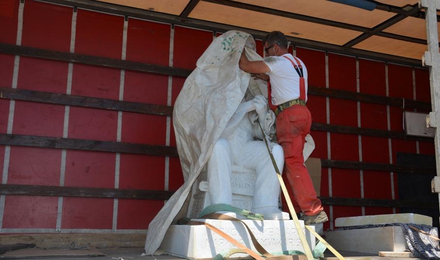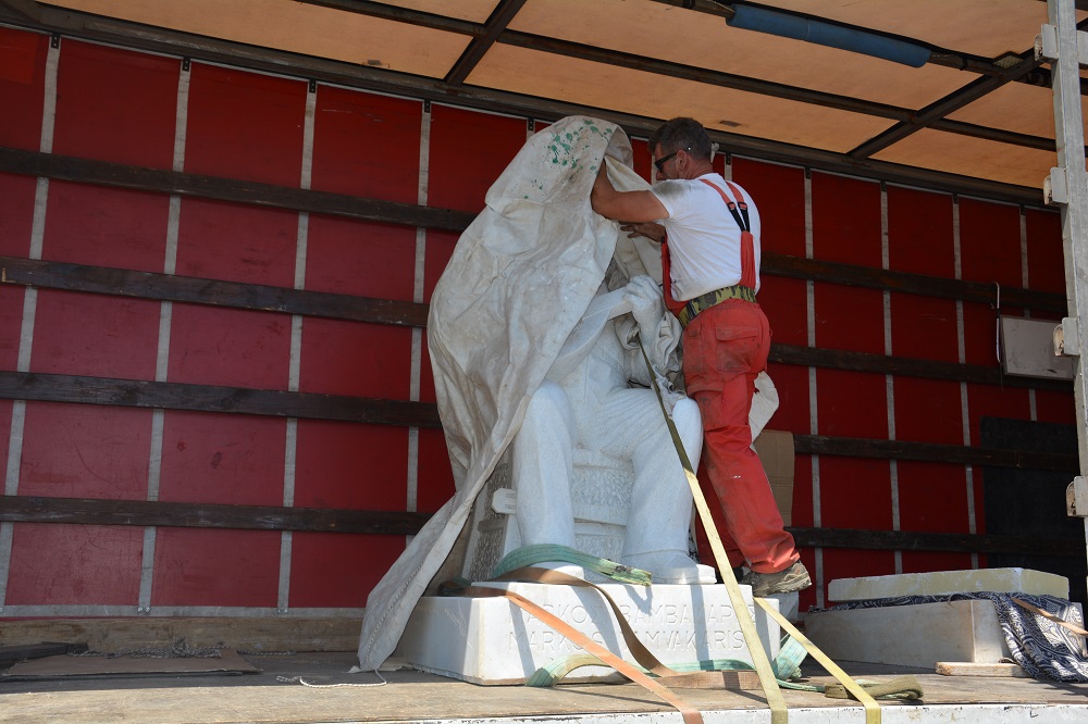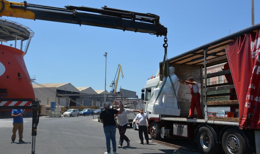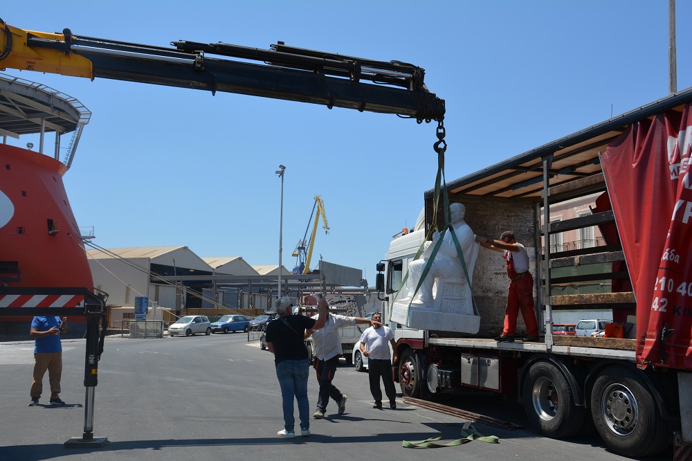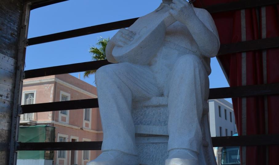 Το άγαλμα συνόδευε ο δημιουργός του, ο γλύπτης Πέτρος Γεωργαρίου, ο οποίος επέβλεπε όλη τη διαδικασία με συγκίνηση αλλά και πολλή αγωνία.