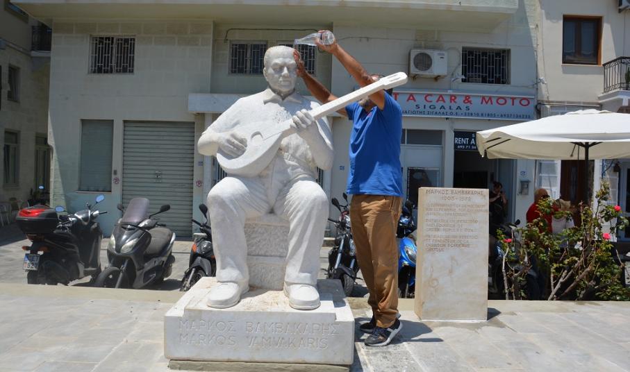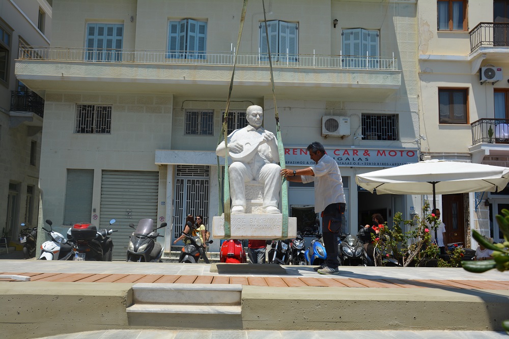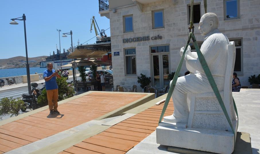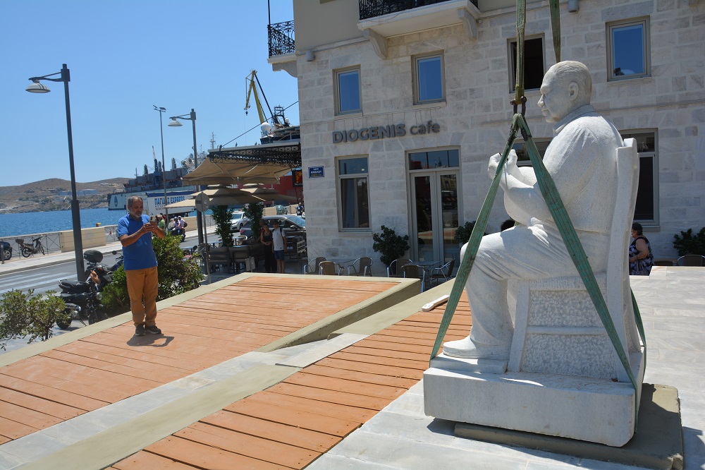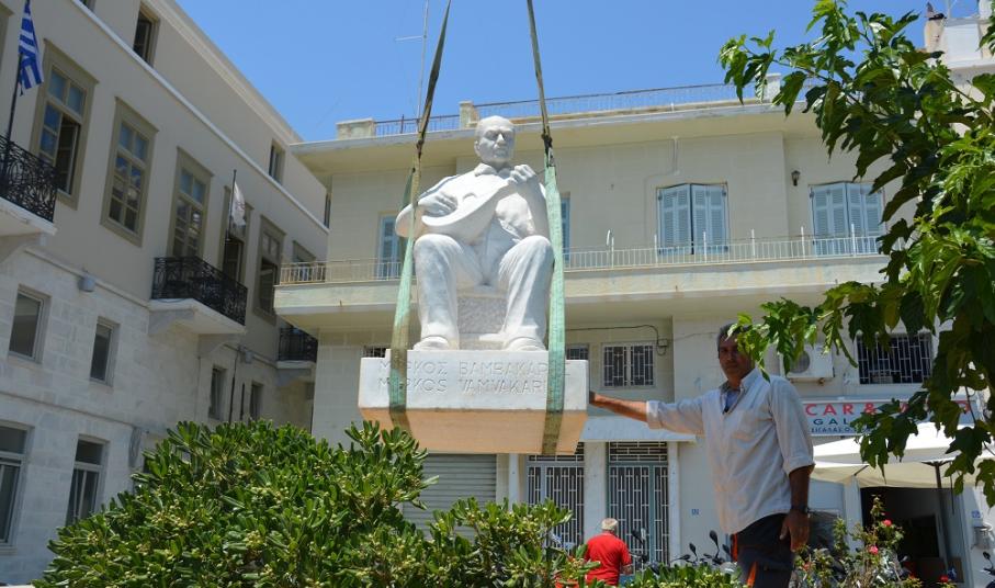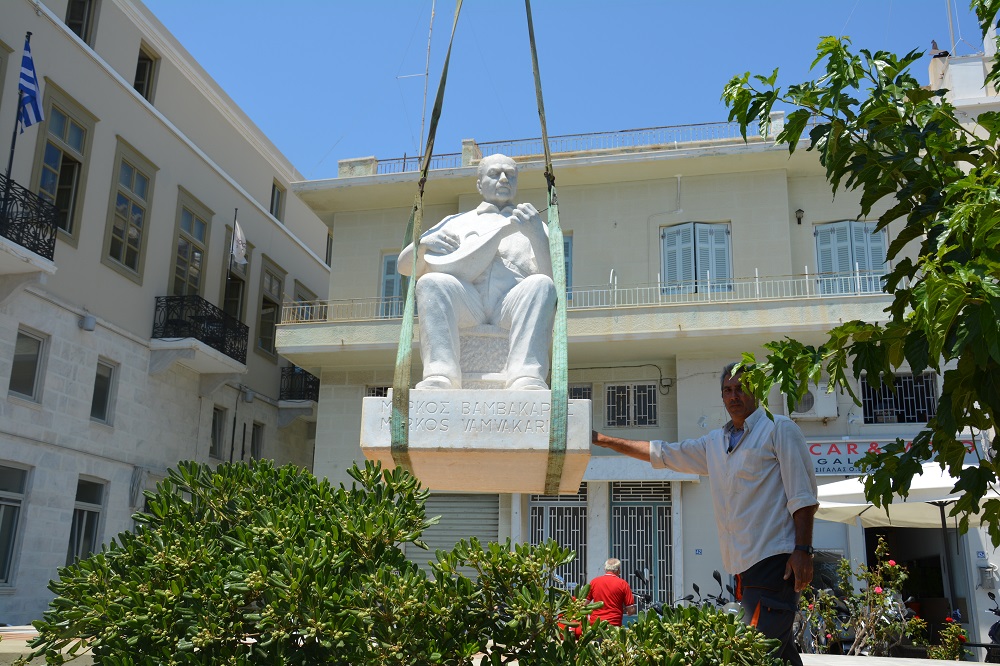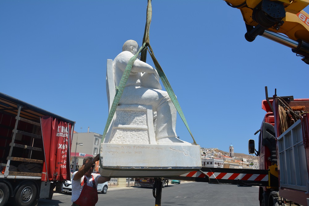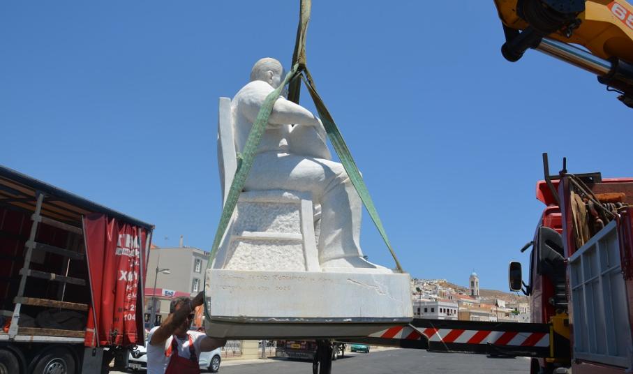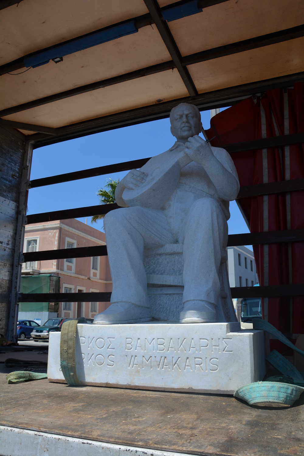 Με το πρωινό δρομολόγιο από Πειραιά έφτασε στη Σύρο το πολυσυζητημένο άγαλμα του Μάρκου Βαμβακάρη και τοποθετήθηκε στην παραλία της Ερμούπολης, στην πλατεία Παπάγου, στην οποία είχε γίνει ανάπλαση πριν λίγο καιρό για αυτόν ακριβώς το λόγο.