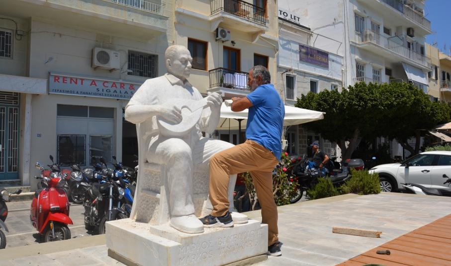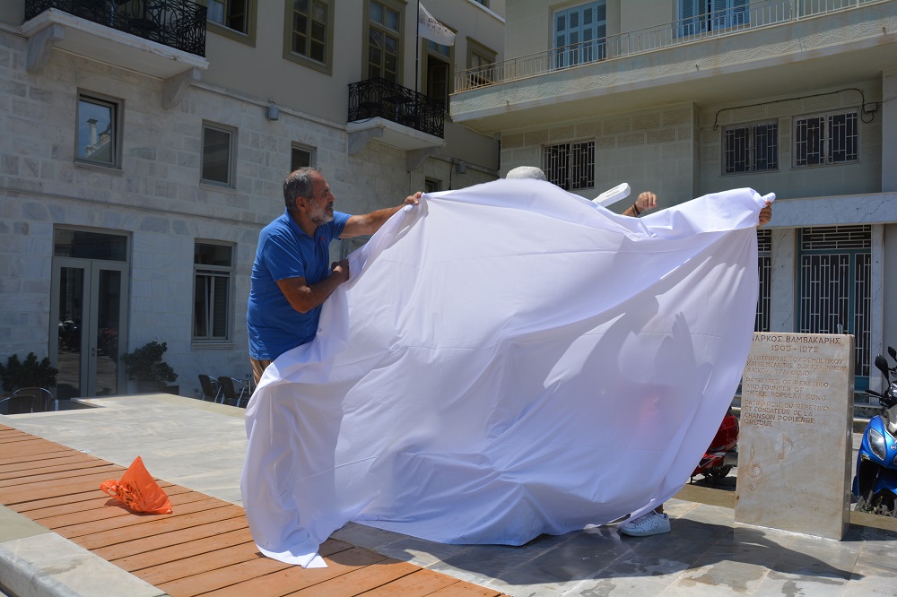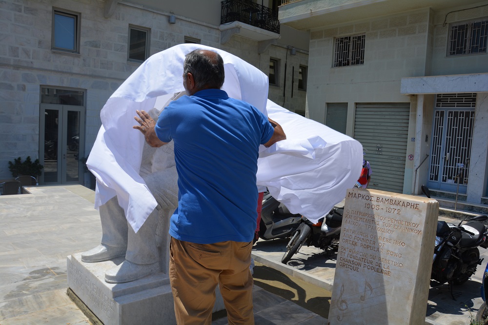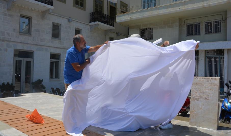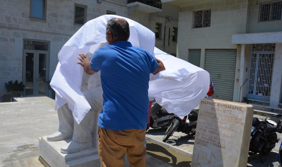 Το άγαλμα του Μάρκου Βαμβακάρη, θα παραμείνει καλυμμένο μέχρι το Σάββατο 18 Ιουνίου όπου θα γίνουν τα επίσημα αποκαλυπτήρια.