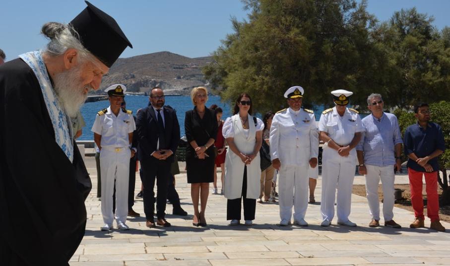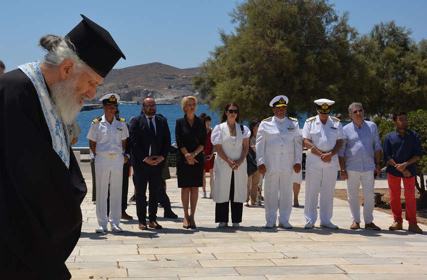 Παρουσία του Γενικού Γραμματέα Αιγαίου και Νησιωτικής Πολιτικής, κ. Μανώλη Κουτουλάκη, εκπροσώπων της τοπικής αυτοδιοίκησης, της Λιμενικής Αρχής και του Στρατού, του Διοικητή της Υπηρεσίας Φάρων και του Διοικητή της ΠΝ Βάσης Σύρου, έγινε χθες η επιμνημόσυνη δέηση και η κατάθεση στεφάνων στο μνημείο Αγνώστου Ναύτου, στο πλαίσιο των Ναυτικών Εορτών Σύρου.