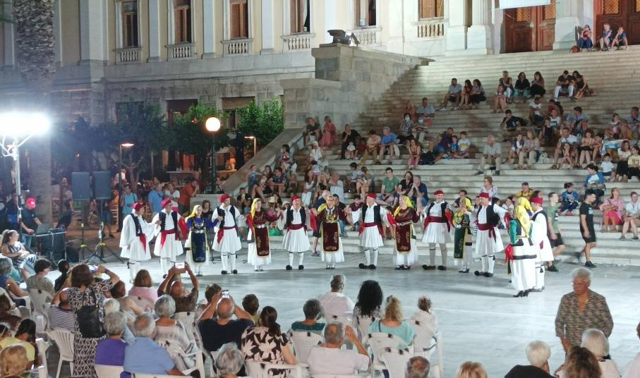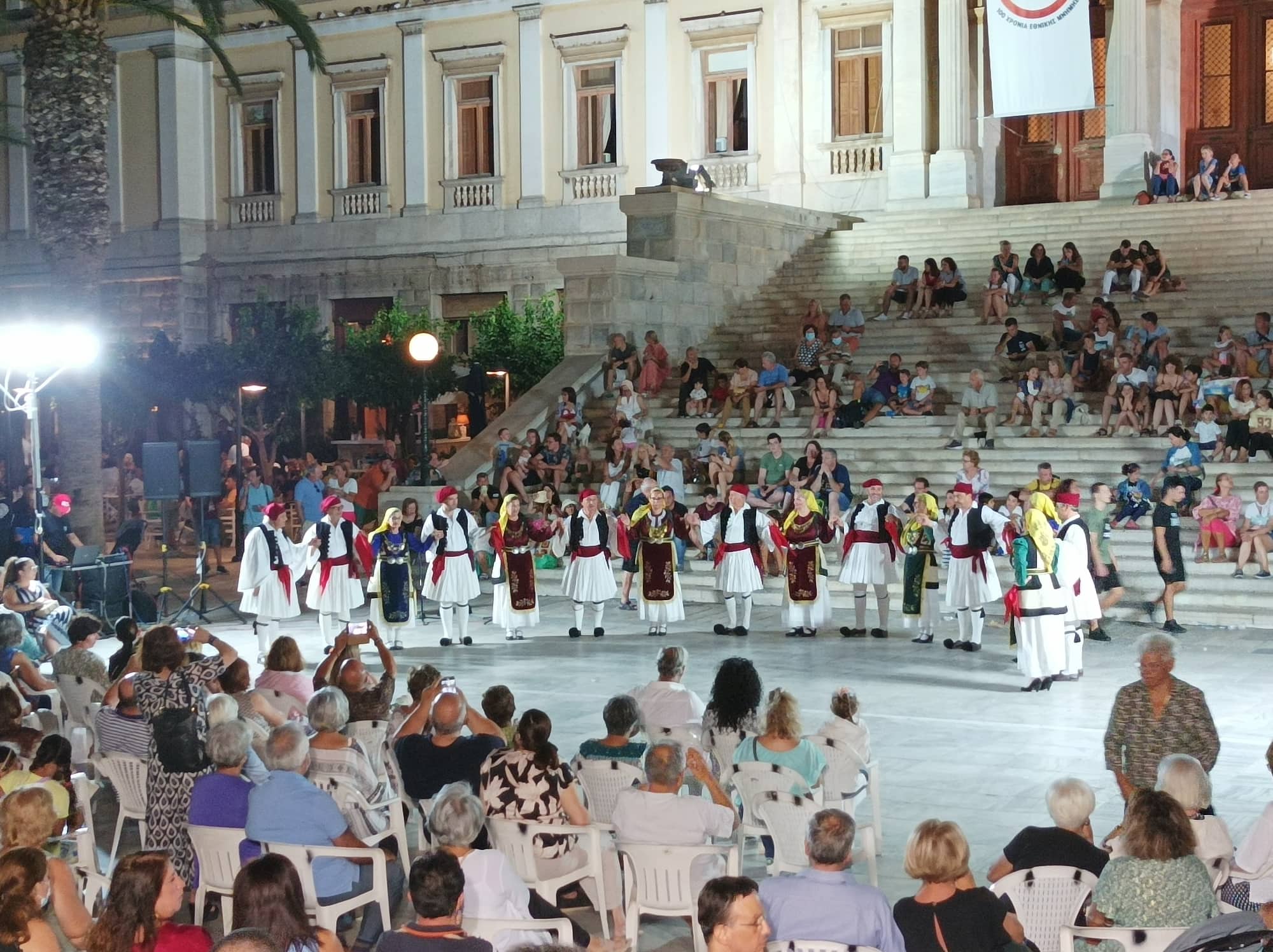 Πλήθος κόσμου συγκεντρώθηκε από νωρίς στην πλατεία Μιαούλη, για να συμμετάσχει στην παραδοσιακή μουσικοχορευτική γιορτή που έγινε θεσμός.