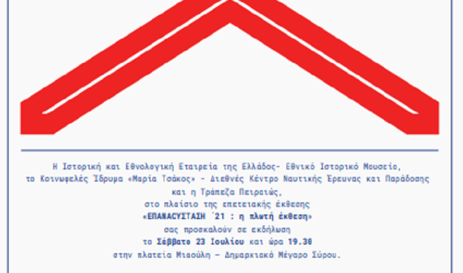 Η επετειακή έκθεση «ΕΠΑΝΑCYΣΤΑΣΗ ΄21 : η πλωτή έκθεση» πιάνει λιμάνι στη Σύρο.