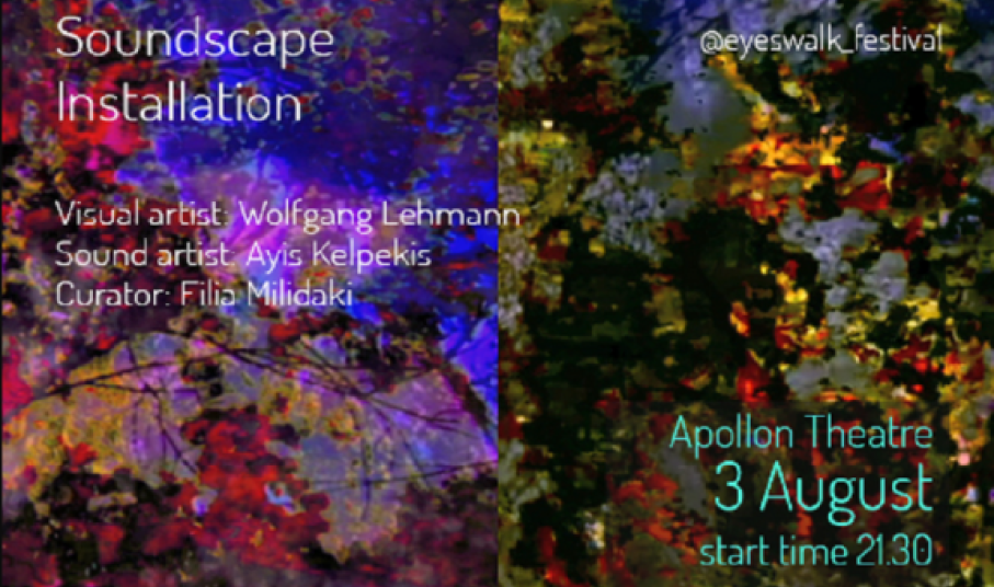 Το Eye’s Walk Digital Festival, το οποίο ξεκίνησε από τη Σύρο, είναι ένα φεστιβάλ που αναπτύσσεται και κινείται με πολλή ορμή γύρω από τις ψηφιακές τεχνολογίες και την ψηφιακή τέχνη. Σε αυτήν την παραγωγή, μας παρουσιάζει ένα video art πάνω στην πρόσοψη του θεάτρου Απόλλων με την ταυτόχρονη δημιουργία ενός πρωτότυπου ηχοτοπίου από δύο καλλιτέχνες οι οποίοι δεν έχουν συναντηθεί ως τώρα. Το φεστιβάλ αποτέλεσε τον πρεσβευτή αυτής της ιδέας κι τους έφερε σε επικοινωνία για πρώτη φορά. Στη συνέχεια, ο καθένας δημιούργησε μόνος έχοντας ωστόσο κοινό στόχο. “Ένας από τους ρόλους του φεστιβάλ είναι να φέρνει κοντά ανθρώπους και να δημιουργεί συμπράξεις με διαφορετικούς καλλιτέχνες. Ο Wolfgang, πιο κοντά σε έναν οπτικό ιμπρεσιονισμό, πλάθει μια οργιαστική Φύση, από μαγικά χόρτα και φυτά. Αφήνει το μυαλό σε ψυχεδελικά οράματα, να συναντηθεί με τις Βαλκυρίες -γυναικείες θεότητες, κρυμμένες πίσω από τις φυλλωσιές, πριν τη μάχη, ήρεμες και θηλυκές.
