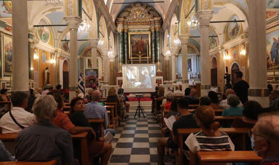  Η Πρώτη Κυρία του εκκλησιαστικού οργάνου του Αγίου Γεωργίου: σύντομη αναφορά στην προσφορά και στο έργο της κας Ελπίδας Ρηγούτσου, η οποία από τη δεκαετία του ‘50 και για περισσότερα από 25 χρόνια, διετέλεσε οργανίστα του Καθεδρικού Ναού της Άνω Σύρου.
