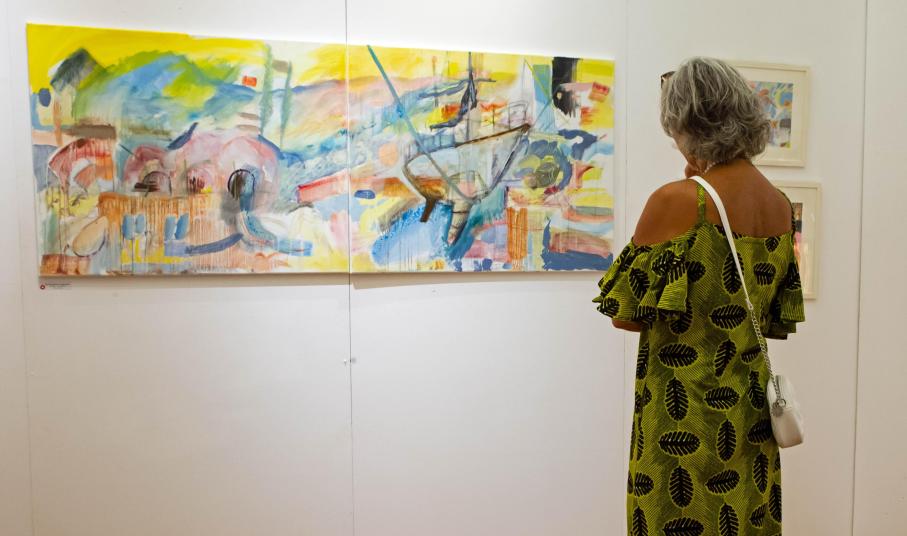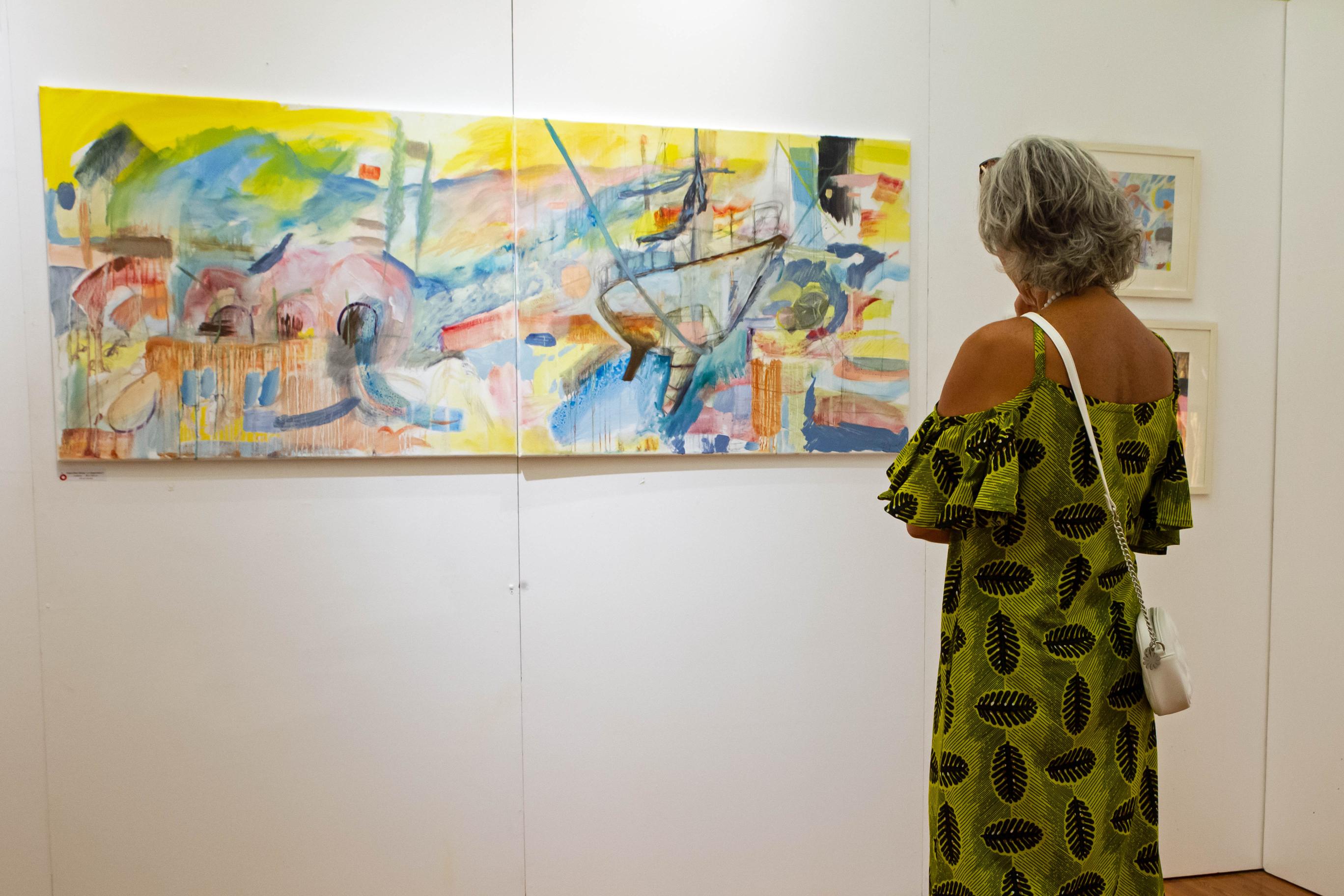 Following a well-attended opening night last evening - 03/09/22, the exhibition, entitled Land-Mark, of paintings by locally resident artist Janet Flynn, contiinues from 14.00-20.00, daily until 15th September at Tsiporina Mansion in Poseidonia. The vibrant paintings portray the artist's impression of the influence of people, technology and innovation on the beautiful landscape of Syros. Aegean light and colour sparkle from more than sixty works of art.