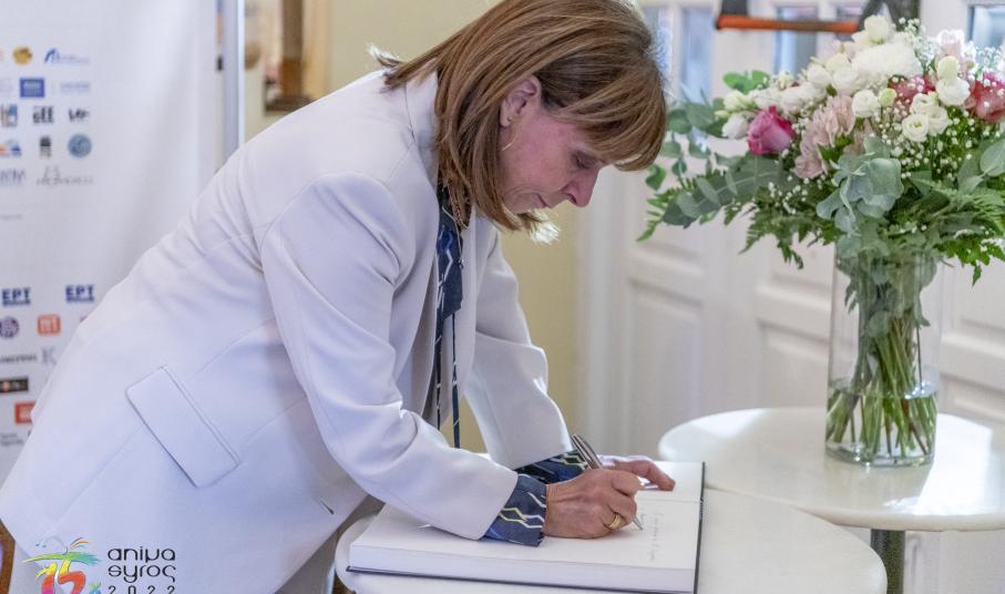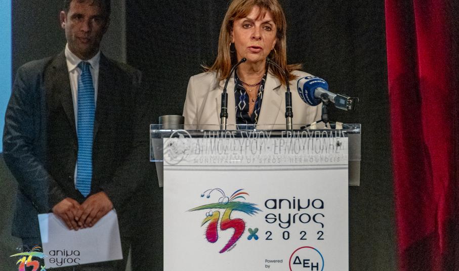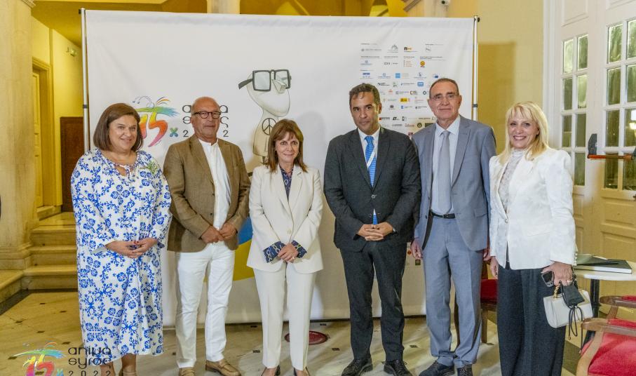 Στο κατάμεστο θέατρο Απόλλων, ανάμεσα στο πολυπληθές κοινό, απηύθυναν χαιρετισμό, ο Βουλευτής Κυκλάδων Φίλιππος Φόρτωμας, ο Γενικός Γραμματέας Ψηφιακής Διακυβέρνησης και Απλούστευσης Διαδικασιών Λεωνίδας Χριστόπουλος, ο Αντιπεριφερειάρχης Γιώργος Λεονταρίτης, ο Δήμαρχος Ερμούπολης Σύρου Νίκος Λειβαδάρας, ο οποίος απένειμε τιμητική πλακέτα στον Πρόεδρο του Animasyros Βασίλη Καραμητσάνη, ο Αντιπρύτανης του Πανεπιστημίου Αιγαίου Δημήτρης Παπαγεωργίου και ο Πρόεδρος και Διευθύνων Σύμβουλος του ΕΚΟΜΕ Πάνος Κουάνης, ενώ το παρών στην εκδήλωση μέσω διαδικτύου έδωσε και ο Υφυπουργός Πολιτισμού και Αθλητισμού αρμόδιος για θέματα Σύγχρονου Πολιτισμού Νικόλας Γιατρομανωλάκης. Στην εκδήλωση παρευρέθηκαν εκπρόσωποι της τοπικής αυτοδιοίκησης, διπλωματικών αποστολών, της Ιεράς Μητρόπολης Σύρου και θεσμικών φορέων.