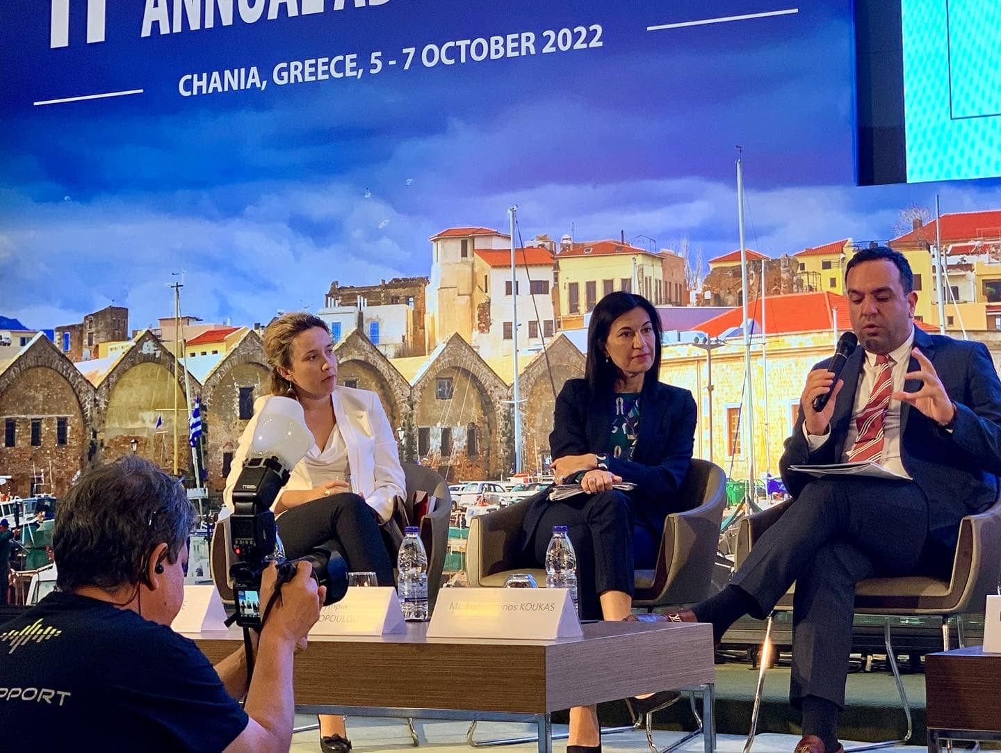 Στα Χανιά, παραβρέθηκε επίσης και η υπουργός Πολιτισμού, Λίνα Μενδώνη,η οποία δήλωσε για τη συμμετοχή της στο φόρουμ: «Είμαστε ευτυχείς που φιλοξενούμε το 11ο Φόρουμ στα Χανιά, πολύ περισσότερο επειδή συμπίπτει με την επέτειο των 35 χρόνων του θεσμού των Πολιτιστικών Διαδρομών. Ο διάλογος και ο σχεδιασμός για τη δημιουργία μιας πολιτιστικής διαδρομής, απαιτεί συνεργασίες σε επιστημονικό και διεπιστημονικό επίπεδο, αλλά και την ενεργό συμμετοχή τοπικών φορέων και κλάδων της οικονομίας, προσφέροντας ένα διαφορετικό είδος πολιτιστικής επιχειρηματικότητας, στενά συνδεδεμένης με το πολιτιστικό απόθεμα” , ενώ για τη σημασία της χώρας μας και το ρόλο της στην πολιτιστική κληρονομιά της Ευρώπης, δήλωσε: «Το δυνατό μας χαρτί είναι ο ίδιος ο πολιτισμός μας. Και πολιτισμός είναι τα πάντα. Έχουμε μια τεράστια πολιτιστική κληρονομιά και μάλιστα στη μακρά ιστορική διάρκεια. Έχουμε άυλη πολιτιστική κληρονομιά, η οποία ξεχωρίζει για την ποιότητα και την ποικιλομορφία της και έχουμε και μια σύγχρονη δημιουργία, η οποία ιδιαίτερα μετά την περίοδο της πανδημίας, παρουσιάζει πάρα πολύ μεγάλη άνθηση. Επομένως, τα τρία πλεονεκτήματα που θέλουμε για τις Πολιτιστικές Διαδρομές τα έχουμε. Από εκεί και πέρα αν όλα αυτά συνδυαστούν με ένα εξαιρετικά σημαντικό φυσικό περιβάλλον και με μια δυνατή, νέα και καινοτόμο επιχειρηματικότητα που δημιουργείται πλέον στην Ελλάδα μέσω των start ups και των επενδύσεων νομίζω ότι έχουμε όλο το φάσμα που επιτρέπει να είμαστε παρόντες, δυνατά παρόντες στις Πολιτιστικές Διαδρομές».