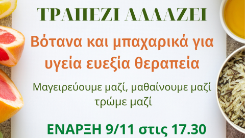 Θα μάθουμε κάποιες βασικές αρχές για να τρεφόμαστε πιο υγιεινά, με εποχιακά υλικά και άγρια βότανα, μπαχαρικά και χόρτα.