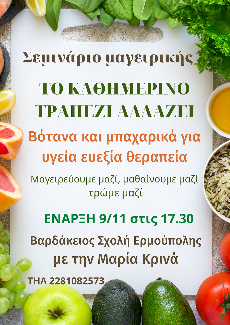 Σεμινάριο Μαγειρικής & Υγιεινής Διατροφής στη Βαρδάκειο Σχολή Ερμούπολης