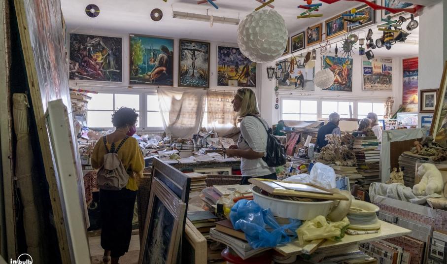Οι ομάδες επισκέπτονται τους χώρους των καλλιτεχνών, ξεναγούνται, βλέπουν τα έργα τους, τις σημειώσεις τους, τα σκίτσα τους, τις συλλογές τους, συζητούν για τέχνη και γνωρίζουν σε ένα πιο προσωπικό επίπεδο τους δημιουργούς μέσα από ιστορίες και βιώματα που οι ίδιοι διηγούνται. Ενίοτε, ενδέχεται να προκύψουν και ευχάριστες εκπλήξεις όπως συνέβη στην επίσκεψη στο εργαστήριο του κ. Βαρβέρη ο οποίος, εκτός προγράμματος, έβγαλε τα υλικά του και ζωγράφισε έναν πίνακα από το μηδέν ενώ όλοι, όπως μας περιγράφει η συντονίστρια της δράσης, παρακολουθούσαν σιωπηλοί και γοητευμένοι. Στο τέλος των ξεναγήσεων, οι συμμετέχοντες κάθονται μαζί με τους καλλιτέχνες, απολαμβάνοντας κάποιο κέρασμα για το οποίο έχει φροντίσει η Hermoupolis Heritage και συζητούν για τη συγκεκριμένη εμπειρία. “Αυτή η αλληλεπίδραση και η έκθεση του καλλιτέχνη, δημιουργεί ένα αίσθημα εμπιστοσύνης και μία σύνδεση, η οποία νομίζω πως δεν αφορά μόνο ένα εξειδικευμένο κοινό. Είμαστε ευγνώμονες που μας ανοίγουν τους προσωπικούς τους χώρους και παρατηρώ ότι όλοι φεύγουν με ένα χαμόγελο, σαν να νιώθουν ότι απέκτησαν έναν καινούργιο φίλο” λέει η Αγνή Ρούσσου.