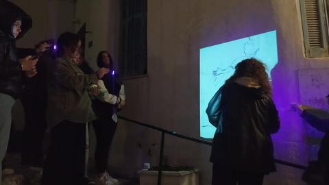 “Το πρότζεκτ διήρκησε αρκετούς μήνες με διαδικτυακές συναντήσεις, ενώ όταν πλέον πήγαμε την Άνοιξη του 2022 στο νησί, κάναμε ένα workshop μαζί με τους μαθητές όπου, σύμφωνα με τις μαρτυρίες που είχαν συγκεντρώσει, χαράξαμε μία διαδρομή στη Χώρα της Τήνου και στήσαμε ένα έργο βασισμένο στα παιχνίδια που παίζονταν παλαιότερα στο δημόσιο χώρο” λέει η κα. Χατζηνικολάου.
