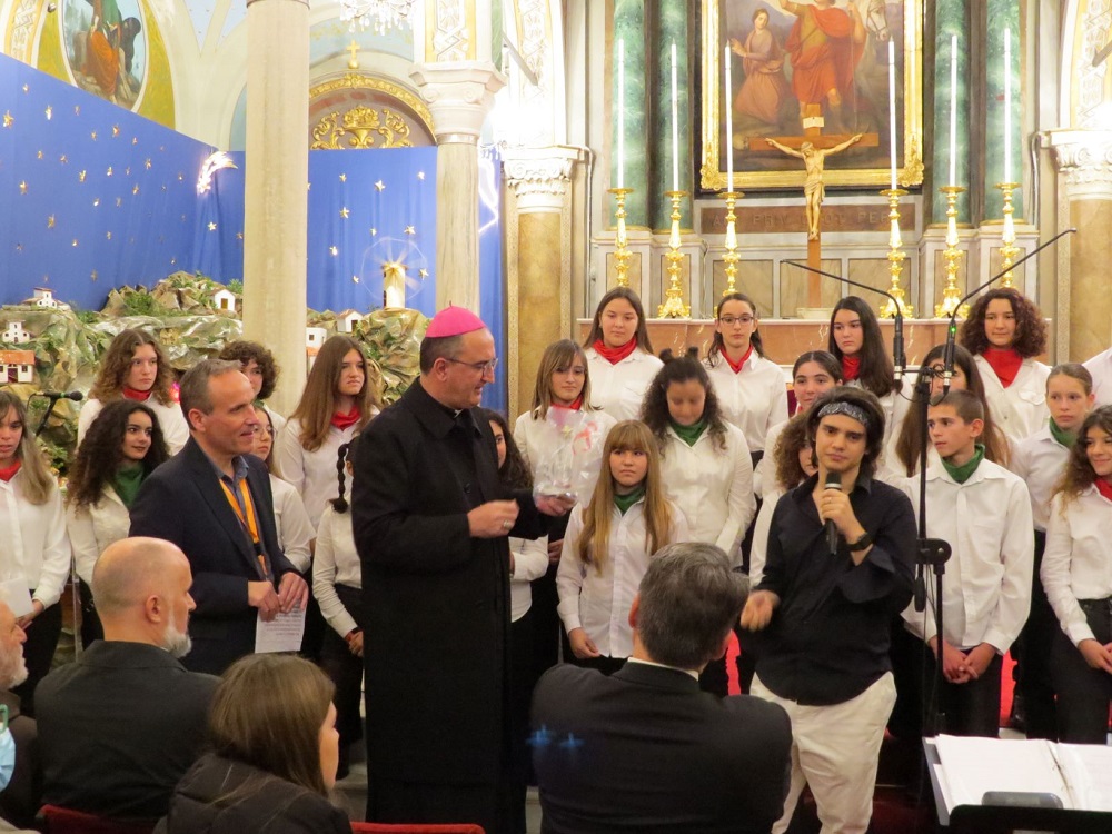 Σε μια ιδιαίτερα ζεστή ατμόσφαιρα, η εκδήλωση ολοκληρώθηκε με τις γιορτινές ευχές του Σεβασμιότατου Καθολικού Επισκόπου Σύρου π. Πέτρου Στεφάνου και την απονομή στα μέλη της Νεανικής Χορωδίας της Ορχήστρας των Κυκλάδων, του συλλεκτικού αναμνηστικού που σχεδιάστηκε από τον δευτεροετή φοιτητή του Τμήματος Μηχανικών Σχεδίασης Προϊόντων & Συστημάτων του Πανεπιστημίου Αιγαίου, Αναστάσιο Καραμάνο.