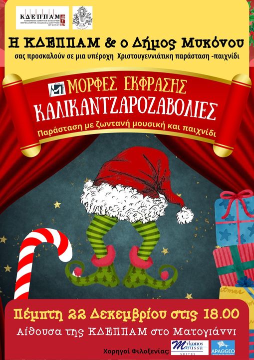 Η ΚΔΕΠΠΑΜ σας προσκαλεί στην παιδική Χριστουγεννιάτικη Παράσταση «Καλικανταροζαβολιές» αύριο στις 6μ.μ. στην αίθουσα στης ΚΔΕΠΠΑΜ.