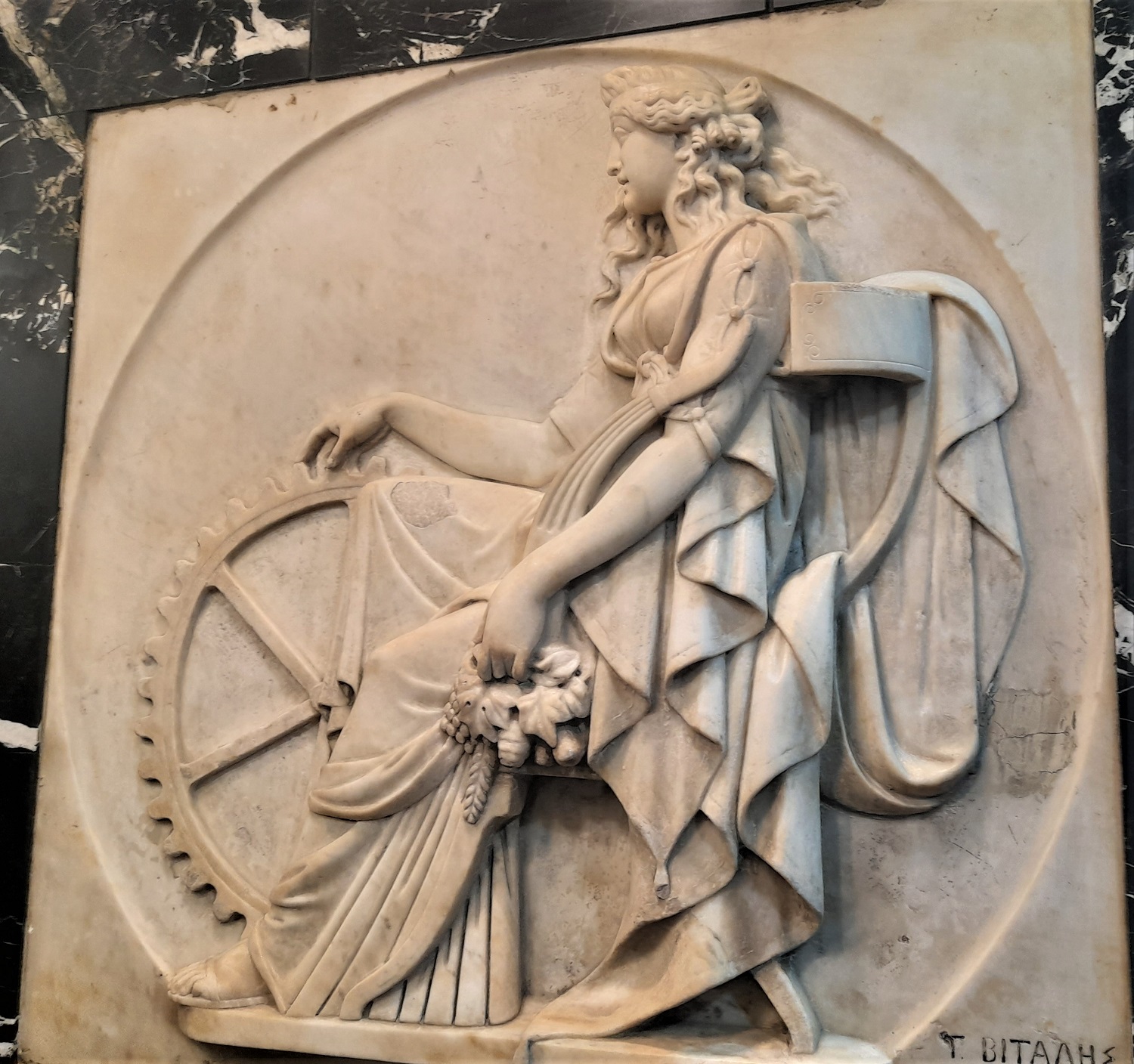Από το 2006 που εγκαταστάθηκα για πρώτη φορά στην Μεγάλη Πόλη, κάθε φορά που περνώ μπροστά από αυτό το κατάστημα, νιώθω ένα σκίρτημα στην καρδιά κοιτάζοντας ένα υπέροχο ανάγλυφο καλλιτεχνούργημα, σμιλεμένο σε λευκό Τηνιακό μάρμαρο, το οποίο αναπαριστά μία υπέροχη γυναικεία μορφή σε καθιστή στάση.