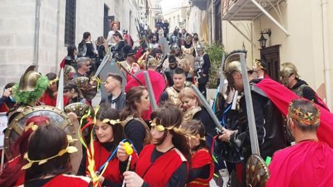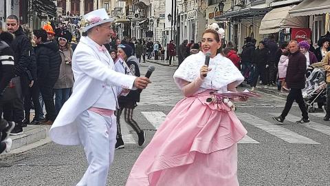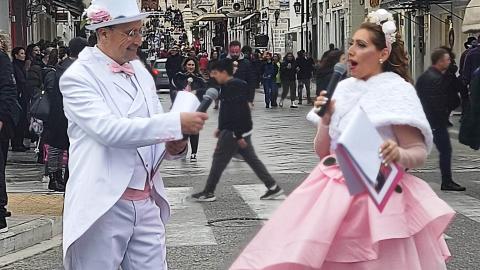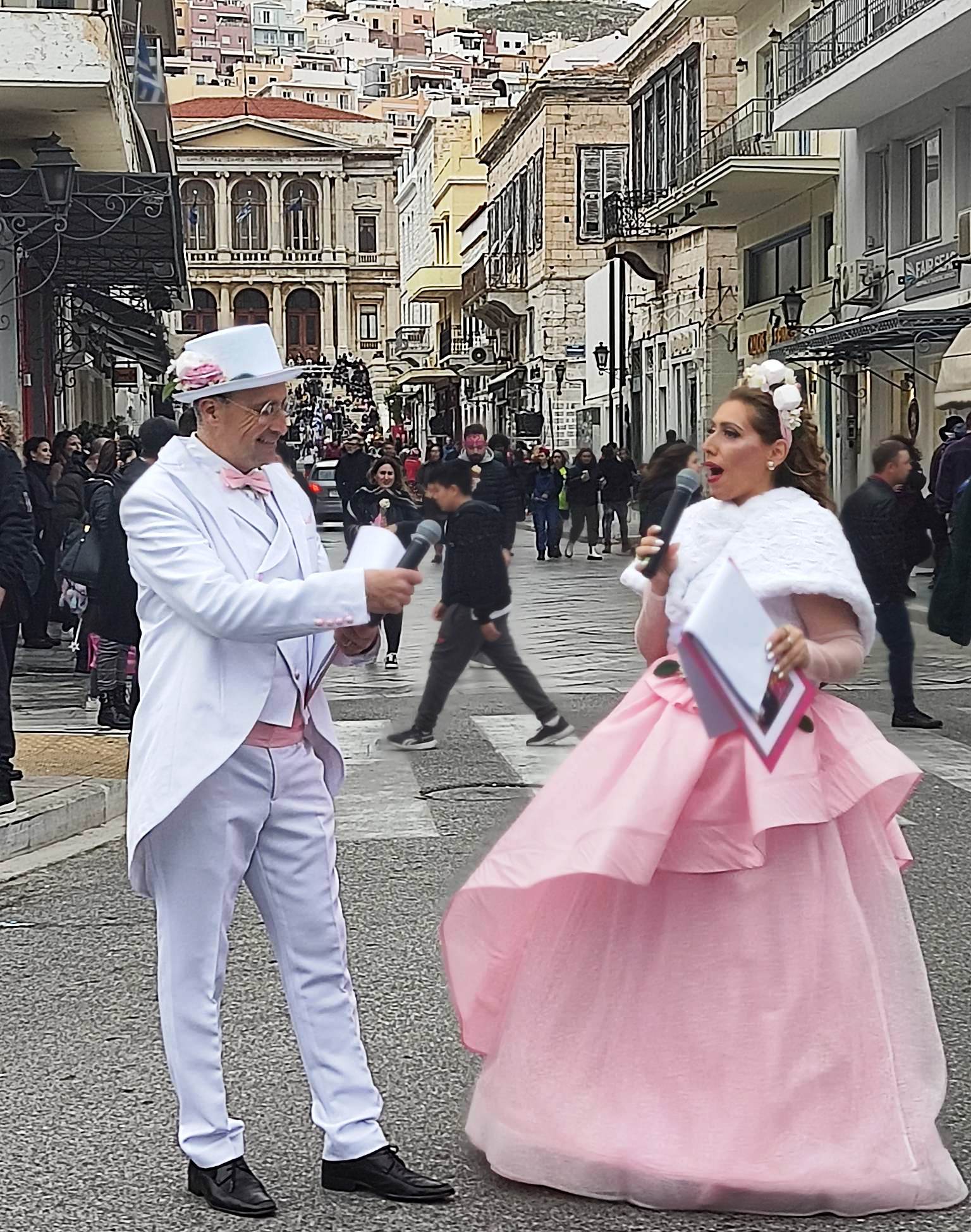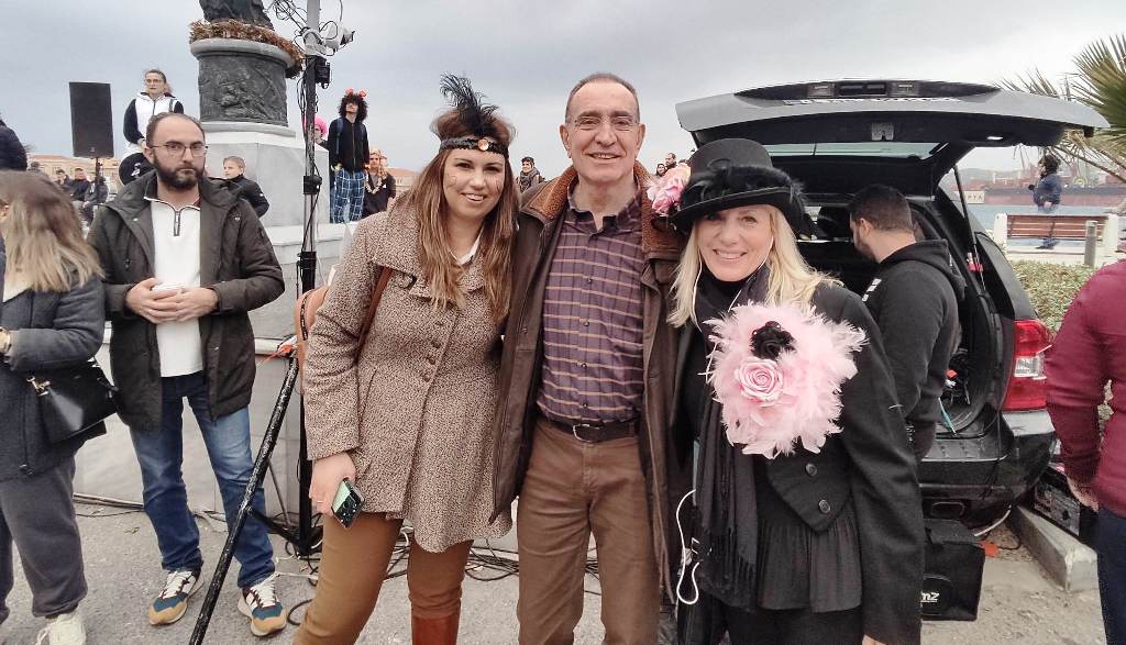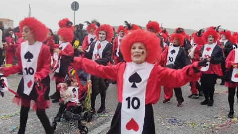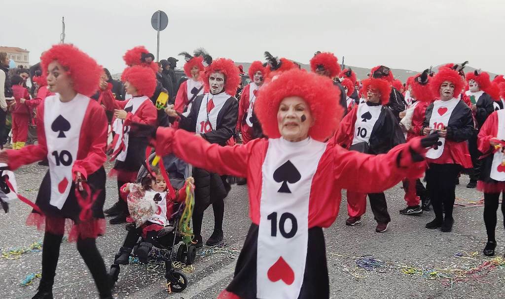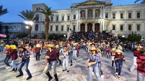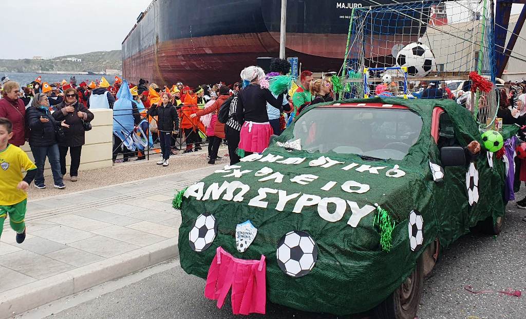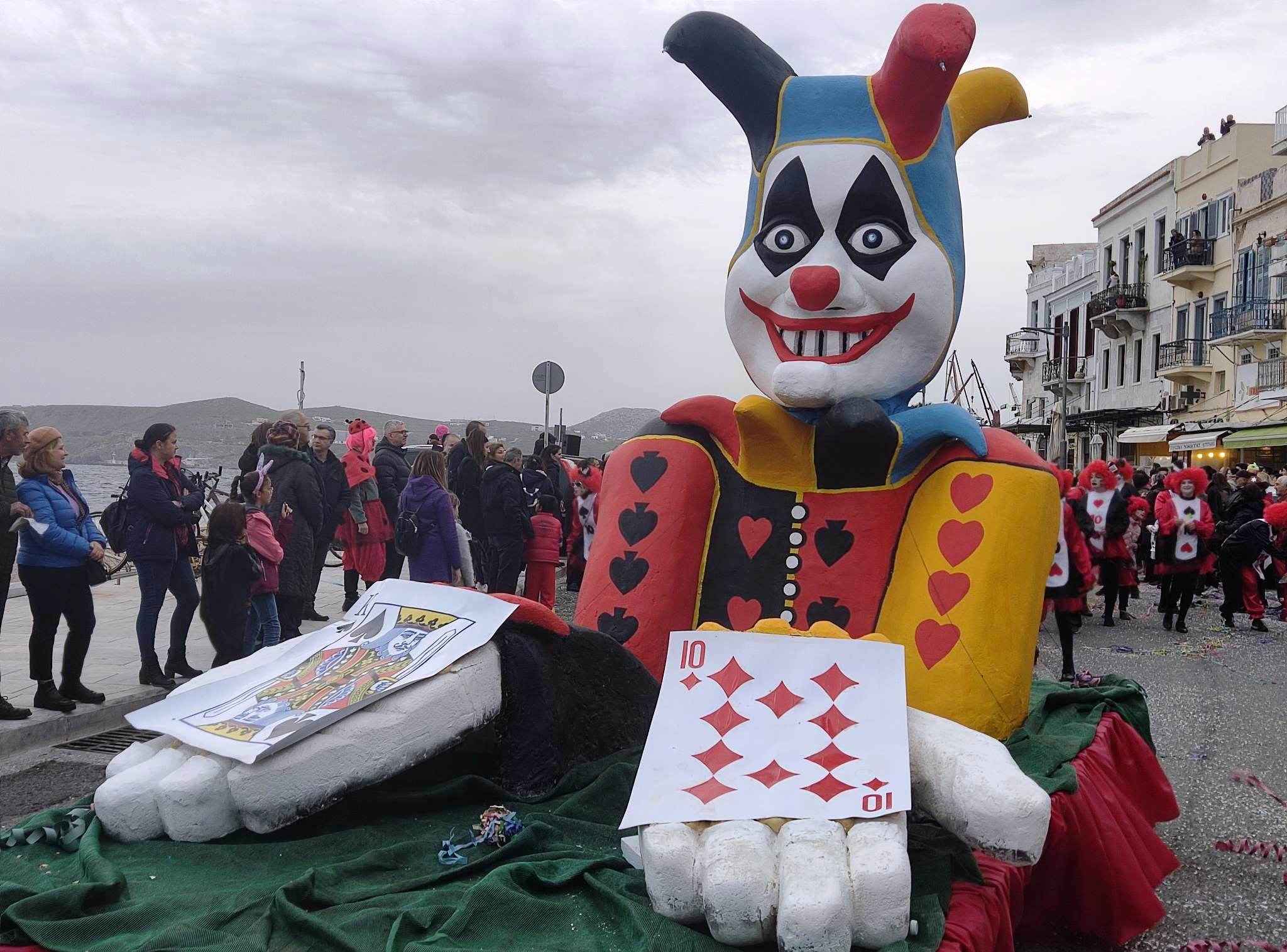 Τελευταία Κυριακή της Αποκριάς και η καρναβαλική παρέλαση στην Ερμούπολη βρίσκεται σε εξέλιξη, με πλήθος κόσμου να έχει πλημμυρίσει το κέντρο της πόλης, δίνοντας μία νότα χαράς και αισιοδοξίας.
