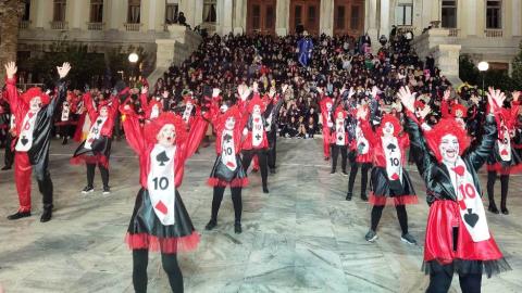 Εκεί, η κάθε ομάδα που συμμετέχει στο καρναβάλι παρουσίασε θα θέμα που επέλεξε για φέτος, με χορευτικά δρώμενα και τραγούδια.