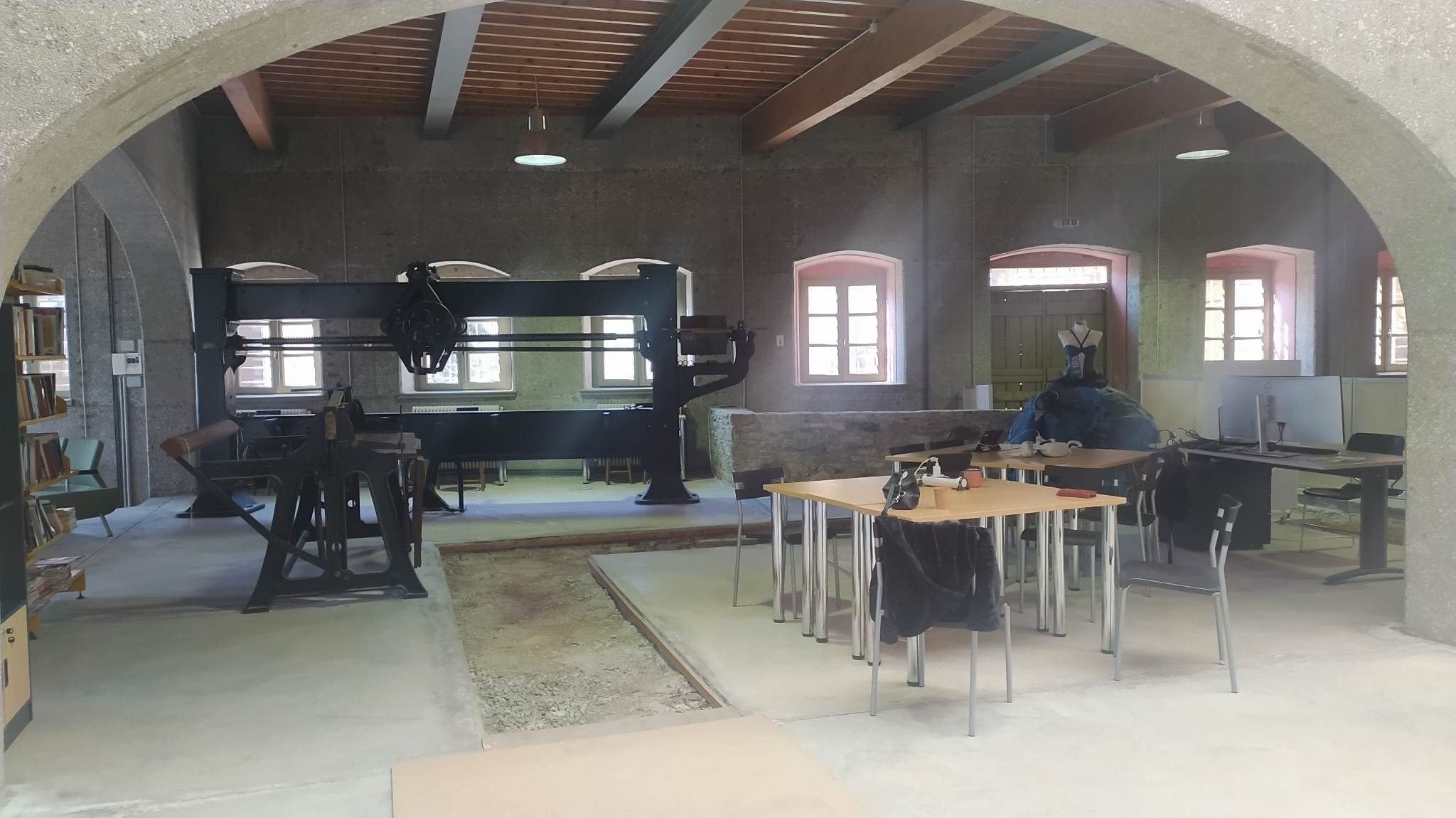 Ο χώρος καταφέρνει και συνδυάζει ιδανικά το παρελθόν με το μέλλον, φιλοξενώντας βιομηχανικά ιστορικά εκθέματα πλάι στις σύγχρονες δημιουργίες των φοιτητών και στην τεχνολογία του μέλλοντος. Στον πάνω όροφο του κτιρίου, προβλέπεται να φιλοξενηθεί σύντομα μία γεωλογική έκθεση η οποία θα φιλοξενεί πετρώματα, δωρεά του επιστήμονα Εngi Martin, και θα παρουσιάζει την πλούσια γεωλογική ιστορία της Σύρου. Η τελική διαμόρφωση του χώρου ωστόσο βρίσκεται ακόμα σε εξέλιξη.