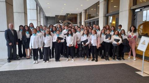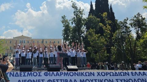 Περισσότερα από 40 παιδιά της Χορωδίας της ΟτΚ, αποτελούμενα από παιδιά του Νεανικού Τμήματος της Χορωδίας, πλαισιωμένα από μεγαλύτερα παιδιά του Παιδικού Τμήματος (τάξεων Ε’ & Στ’), εκπροσώπησαν τη Χορωδία και συμμετείχαν με ένα πρόγραμμα 4 τραγουδιών στο 16ο Διεθνές Φεστιβάλ Μουσικών Συνόλων που διεξήχθη στις 22/4 στο Μέγαρο Μουσικής Αθηνών.
