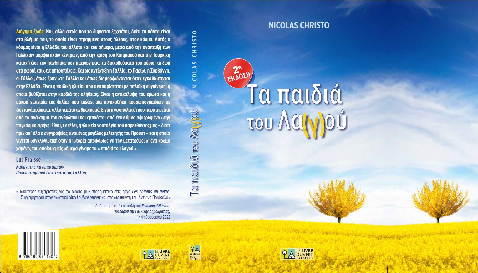 Ο εκδοτικός οίκος LE LIVRE OUVERT,  ο Σύνδεσμος Μελών Τάγματος Ακαδημαϊκού Φοίνικα Γαλλίας στην Ελλάδα και η Κοινωφελής Δημοτική Επιχείρηση Περιβάλλοντος Παιδείας και Ανάπτυξης Μυκόνου σας προσκαλούν την Κυριακή 29 Μαΐου στις 18.00 στην παρουσίαση της Β΄ έκδοσης του βιβλίου του Nicola Christo(doulou), Τα παιδιά του Λα(γ)ού.