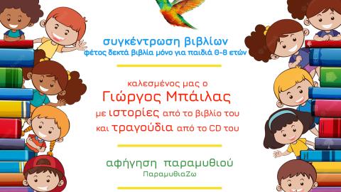 Διαδραστική παρουσίαση βιβλίου, όπου η βιβλιοθήκη θα υποδεχτεί τον συγγραφέα και συνθέτη Γιώργο Μπάιλα, που θα πει μια ιστορία από το βιβλίο του «Παραμύθια» που είναι από τα πρώτα βιβλία που δωρίστηκαν στη Βιβλιοθήκη, μόλις εκδόθηκε, το 2021! Ακόμα, θα τραγουδήσει παιδικά τραγούδια που έχει συνθέσει ο ίδιος. Μετά την παρουσίαση, θα κληρωθούν βιβλία και CD, δώρα του δημιουργού.