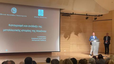 Με μεγάλη επιτυχία και πλήθος κόσμου να δίνει το "παρών", πραγματοποιήθηκε το Σάββατο 17 Ιουνίου στο αμφιθέατρο του μουσείου Μπενάκη, μία εκδήλωση αφιερωμένη στην μεταλλευτική ιστορία της Μυκόνου, με γενικό τίτλο, «Μεταλλεία Μυκόνου - μια ιστορία στο φως» που συνοψίζει τα αποτελέσματα του ερευνητικού προγράμματος του Εθνικού Μετσόβιου Πολυτεχνείου "Καταγραφή και Ανάδειξη της Μεταλλευτικής Ιστορίας της Μυκόνου", βασισμένου στο Αρχείο της Δήμητρας Λοΐζου-Βουλγαράκη.