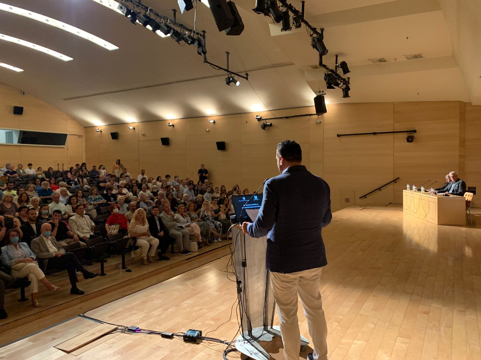 Ο δήμαρχος Μυκόνου, ήταν από τους βασικούς ομιλητές της εκδήλωσης και μεταξύ άλλων, κατά το καλωσόρισμα του στην εκδήλωση, ανέφερε, "Όπως όλοι καταλαβαίνετε πρόκειται για την μεταλλευτική ιστορία της Μυκόνου, ένα κεφάλαιο ανεξερεύνητο μέχρι πρόσφατα, ένα κομμάτι της ιστορίας μας και τον πολιτισμού της Μυκόνου αλλά και της ιστορίας των Κυκλάδων εν γένει.