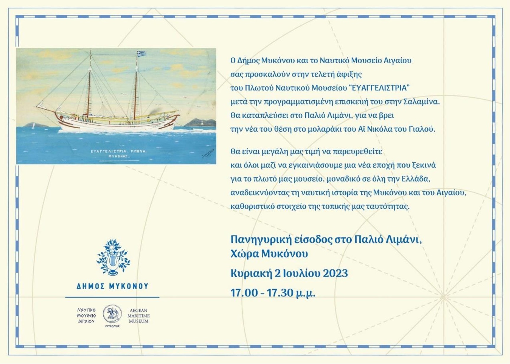 Το Ναυτικό Μουσείο Αιγαίου και ο Δήμος Μυκόνου σας ενημερώνουν και σας προσκαλούν να το επισκεφτείτε!