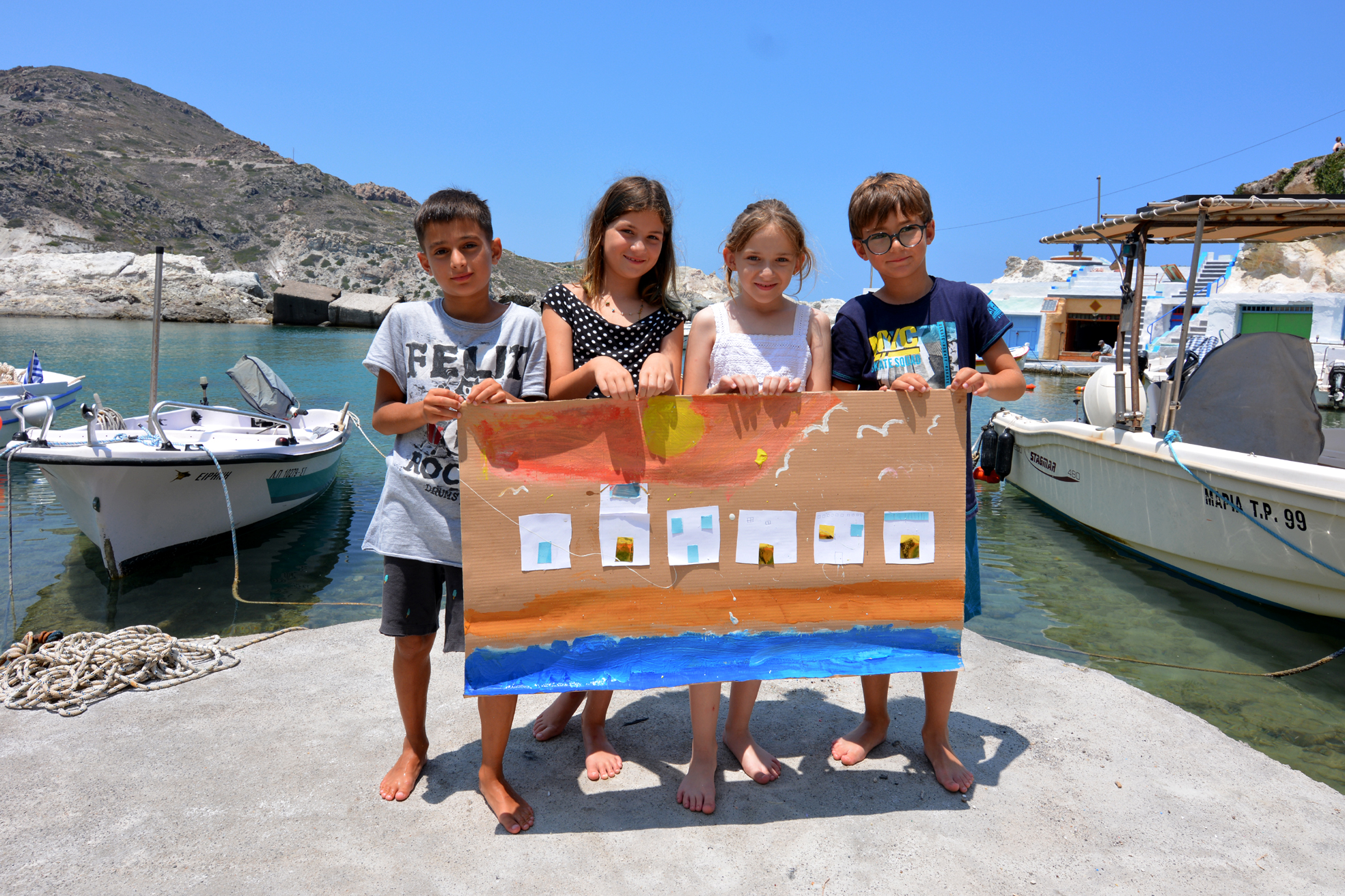 Στο πλαίσιο του προγράμματος και με την καθοδήγηση των έμπειρων εκπαιδευτικών, τα παιδιά μετέτρεψαν το λιμάνι των Μαντρακίων σ’ ένα δημιουργικό πεδίο δράσης παράγοντας εικαστικές δημιουργίες μέσα από μια πληθώρα εκφραστικών μέσων.