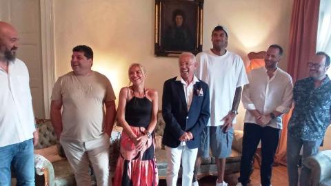 Ο κ. Κοής, αφού αρχικά ευχαρίστησε τους Γιώργο Πρίντεζη και Μαρία Μπεκατώρου για τη στήριξή τους, τόνισε ότι “σε συνεργασία με το πανεπιστήμιο αποφασίσαμε να κάνουμε έναν διαγωνισμό σχεδίασης γυαλιών με θέμα την οροφογραφία την περίφημη γιατί πιστεύουμε τελικά ότι δεν πρέπει να βλέπουμε κάτι που είναι ωραίο, αλλά να δημιουργούμε κάτι που μένει στη Σύρο. Αν καταφέρουμε να το πετύχουμε αυτό θα μας ανοίξει και καινούργιους δρόμους σε όλους εμάς που θέλουμε να κρατήσουμε ζωντανή την ταυτότητα του νησιού”.