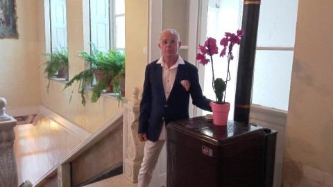 “Καθηγητές του πανεπιστημίου αλλά και φοιτητές ξεκίνησαν μία εφαρμογή επ’ αυξημένης εικονικής πραγματικότητας και στόχος είναι καθώς εισέρχεται μέσα σε αυτή την αίθουσα ένας επισκέπτης, μέσω ενός τάμπλετ, να βλέπει τρεις στιχομυθίες. Αυτές είναι μέσα από το βιβλίο της Μεγάλης Χίμαιρας του Καραγάτση, ένα βιβλίο που έχουν αγαπήσει πολλοί Έλληνες και έχουν μάθει για τη Σύρο και την Ερμούπολη μέσα από τις σελίδες του. Η πρώτη στιχομυθία είναι μεταξύ του νομάρχη και του εισαγγελέα, που δείχνει τη φυσιογνωμία του νησιού εκείνη την εποχή. Η δεύτερη αφορά στη Μαρίνα, την ξένη που νιώθει απομονωμένη, μία πολύ ωραία σκηνή που μπορεί κανείς να την βιώσει μέσα από ένα τάμπλετ. Η τρίτη στιχομυθία είναι κι αυτή φαντασιακή μεταξύ του μακροβιότερου δημάρχου της Ερμούπολης, Βαφειαδάκη, ο οποίος συζητά με την προγιαγιά του Σταύρου Κοή. Και οι δύο ήρθαν στη Σύρο χωρίς υπάρχοντα, χωρίς να έχουν κάποια περιουσία και ξεκίνησαν από το μηδέν και έστησαν από την αρχή τις ζωές και τις οικογένειές τους. Το πρόγραμμα είναι ιδιαίτερα καινοτόμο και πολύ σύντομα οι εφαρμογές αυτές θα είναι έτοιμες”, δήλωσε ο κ. Χατζηγρηγορίου.